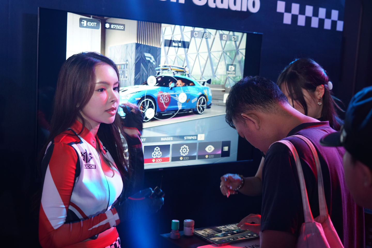 現場邀請畫家駐場開設「巔峰畫政局」為玩家的愛車手繪圖像,玩家也可以透過現場的拍攝 AI 濾鏡,將自己轉化為遊戲中的車手形象。