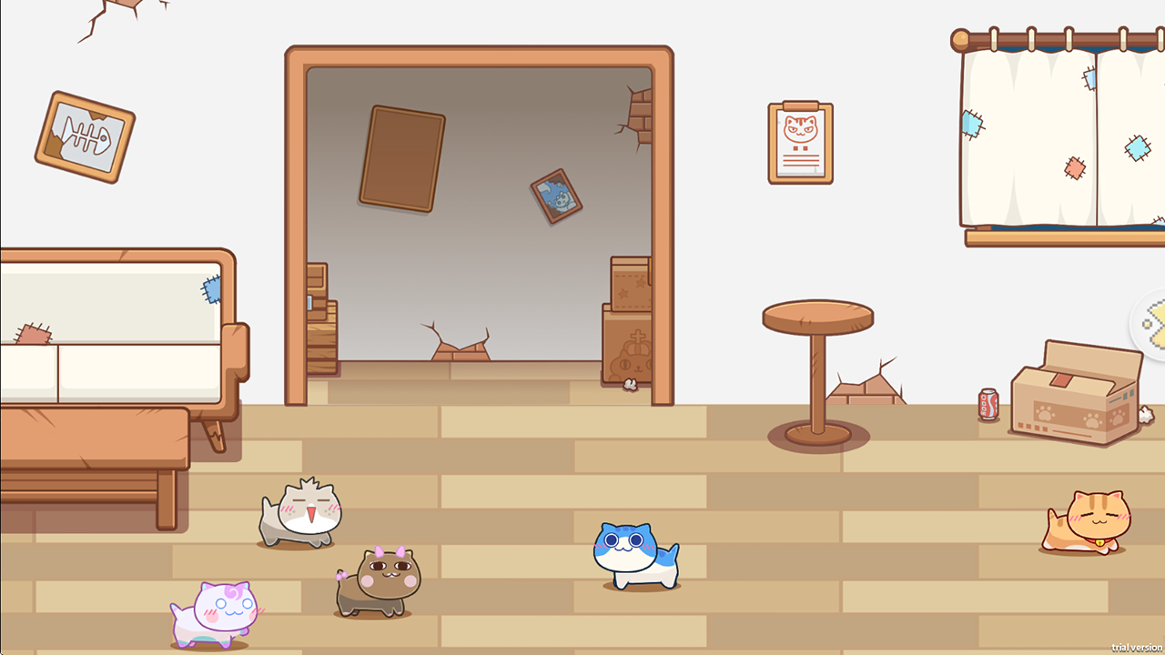 遊戲初期,玩家將從一間簡陋的小旅店開始,與一群可愛的貓咪共同經營,透過賺取小魚乾來添購家具,逐步升級裝潢打造夢幻旅館。遊戲中旅館風格可依個人喜好隨心更換,打造一間可愛又溫馨的旅館吧。