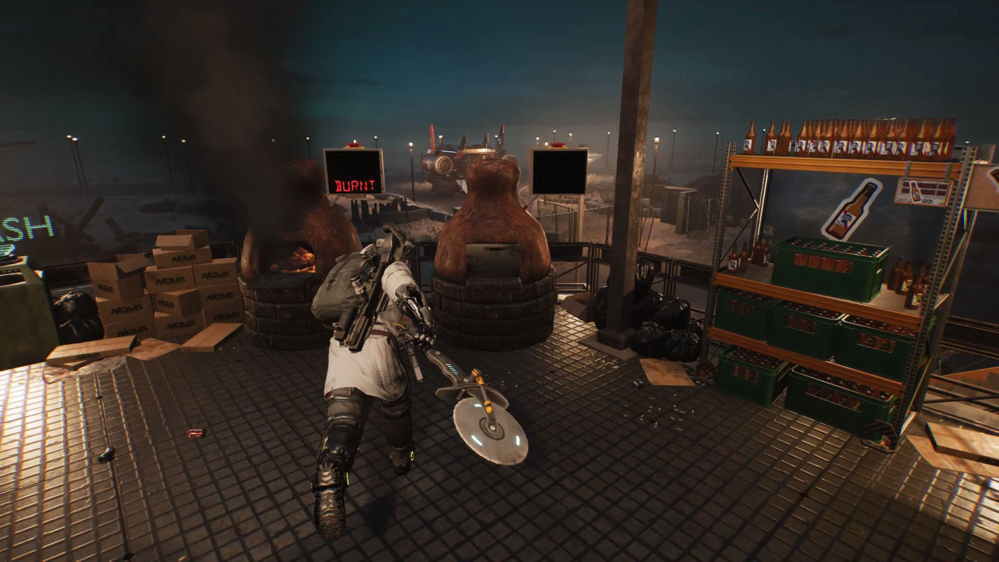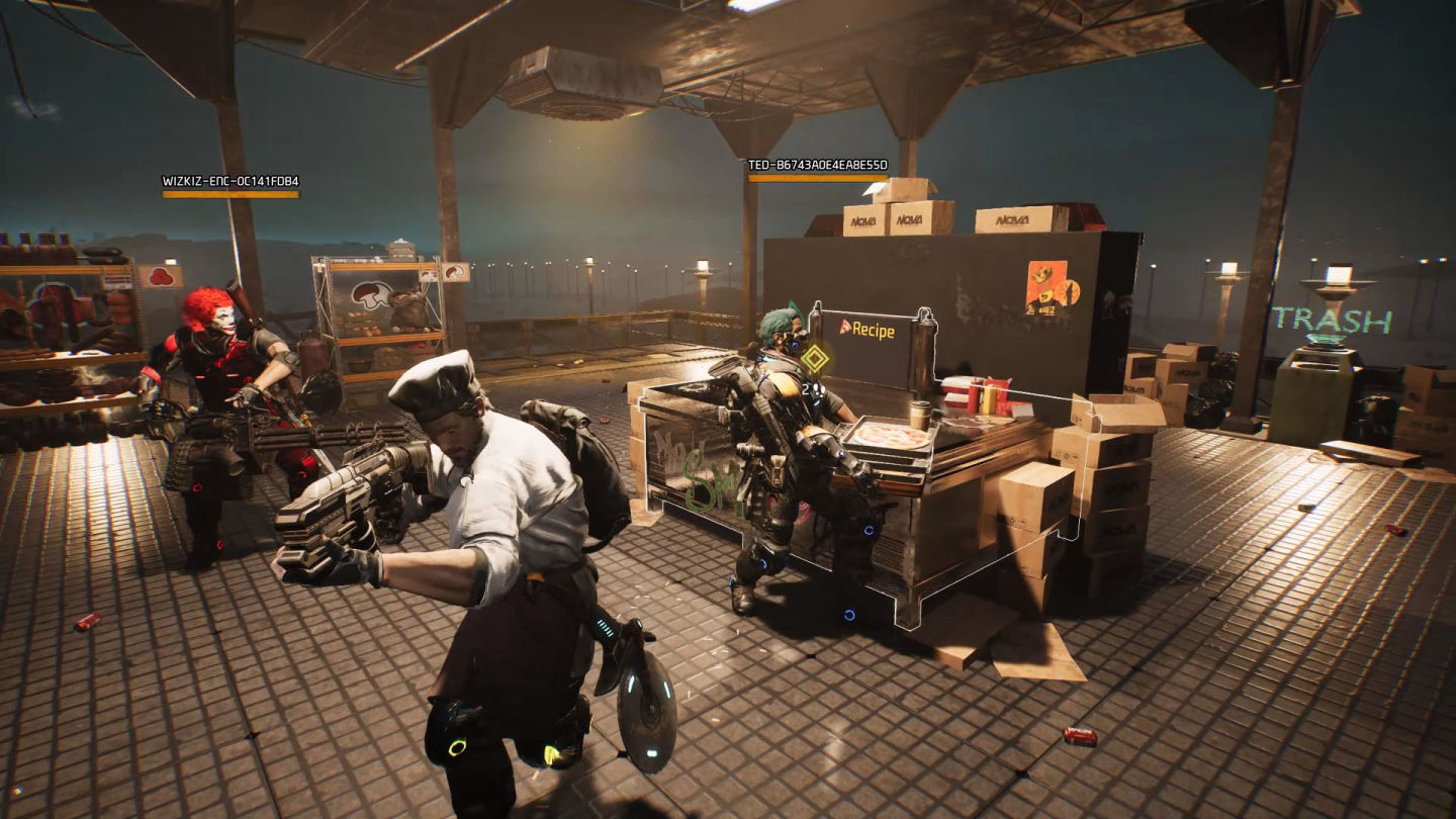 而在賞金任務之間,玩家把辛苦賺來的錢砸進夢想藍圖中,打造一家值得拚命(也值得炸裂)的披薩店。玩家可購買傢俱、廚具、霓虹燈與牆面裝飾,自由打造未來五星名店;同時也能混搭服裝、挑選配色、配戴發光飾品、變換髮型與膚色(臉部與身體不支援塑形)。不管你想走街頭主廚風還是星際美食軍閥風,時尚就是你的武器。