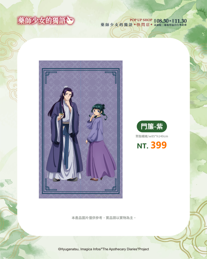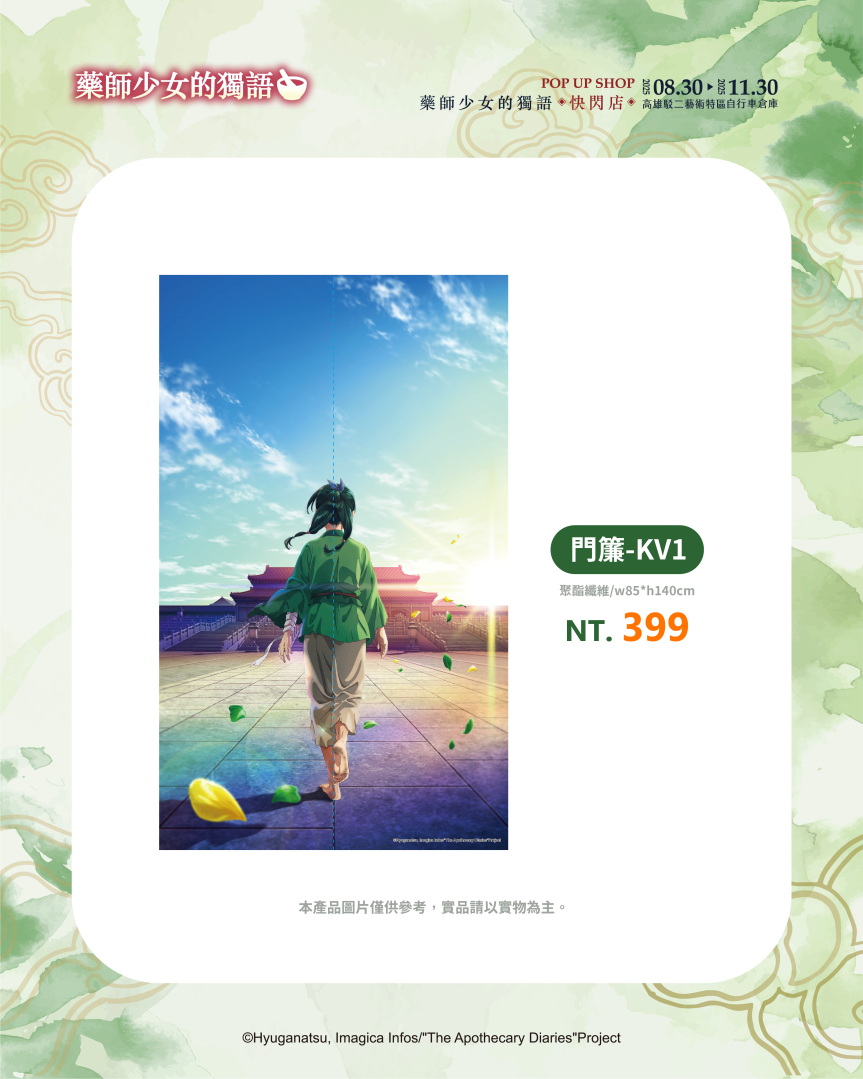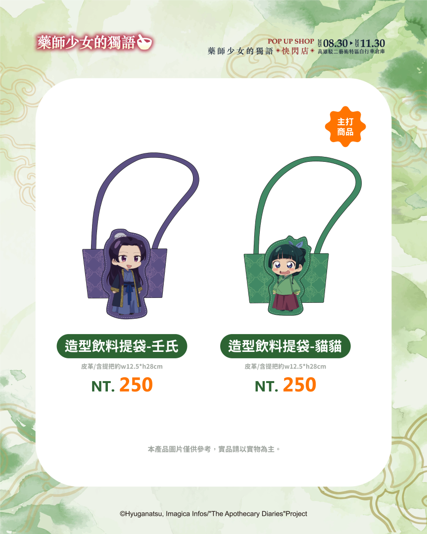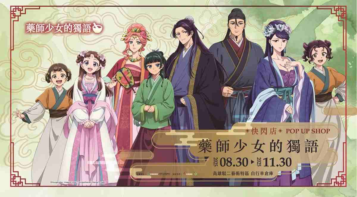 超人氣動畫《藥師少女的獨語》快閃店即將在高雄駁二特區自行車倉庫登場!充滿宮鬥元素的《藥師少女的獨語》憑藉著解謎吸引人一步一步看下去的故事情節,以及貓貓與壬氏的角色魅力掀起全球熱潮。