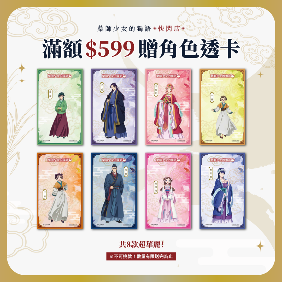 任務二:必買破百樣藥師少女全新首賣商品 各種壬氏與貓貓互動的超甜美圖一定要擁有!