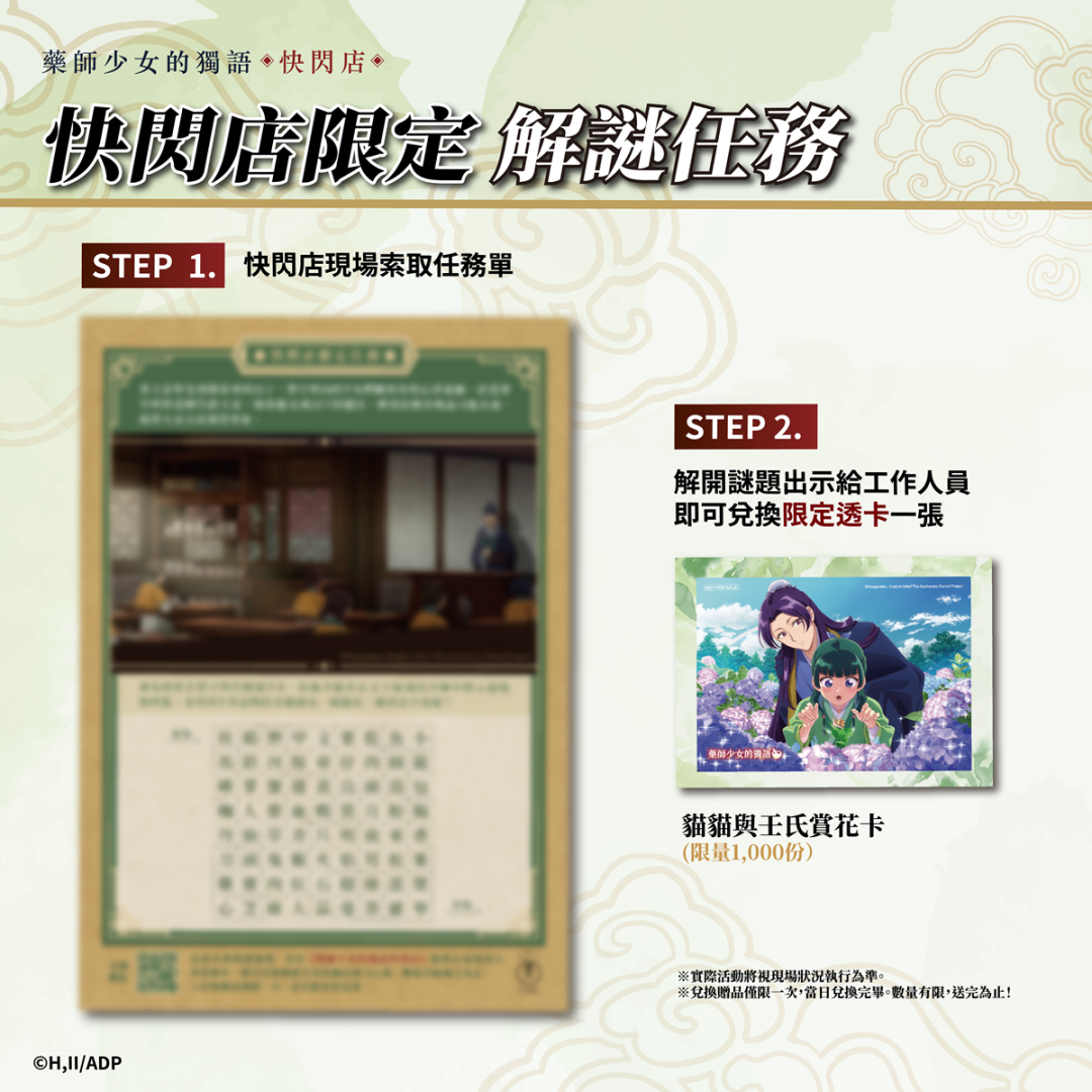 任務三:必拿好禮!歡慶《藥師少女的獨語》快閃店開幕推出限定活動