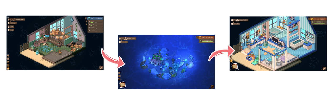 遊戲中您還將擁有多個屬於自己的房子,並且可以收集超過 1,800+ 種家具,使用這些家具來裝飾自己的小屋。並且您也可以更換壁紙、地板以及部分家具的顏色與紋樣。後續還將通過更新帶來更多家具。