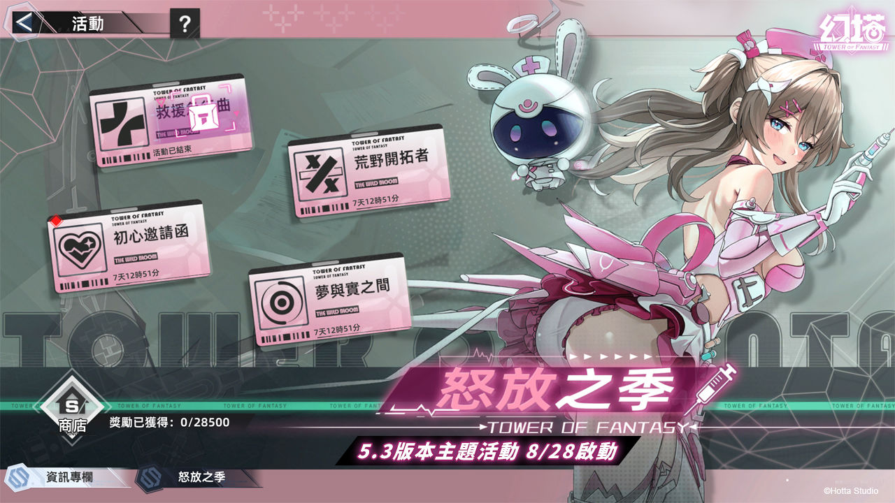 營運團隊更特別舉辦版本限定活動「怒放之季」,準備多樣好禮回饋授權者。此外,授權者於活動期間累積登入《幻塔》達指定天數,最高可獲得墨晶×1,000。
