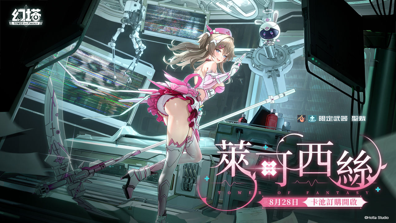 萊可西絲的專屬武器「聖裁」是閃爍著柔和光芒的巨大鐮刀,比起斬斷生的希望,它更希望斬斷與死亡之間的連接。運營團隊也宣佈於 2025 年 8 月 28 日開啟萊可西絲意志訂購活動,讓授權者與萊可西絲一起探索《幻塔》大世界。