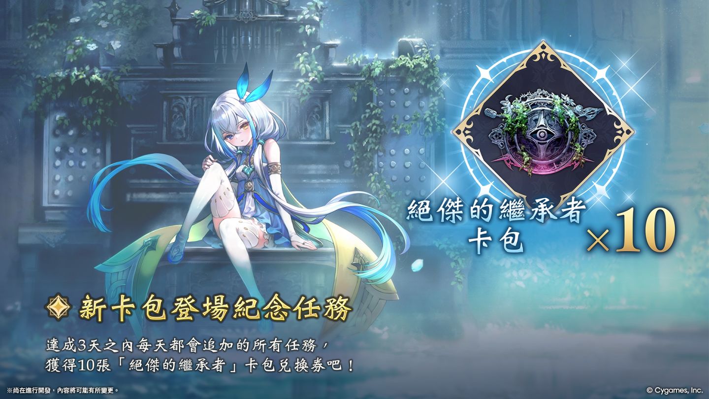 於活動期間中初次登入後,完成 3 天之內每日都會追加的任務,即可獲得共 10 張的「絕傑的繼承者卡包兌換券」。