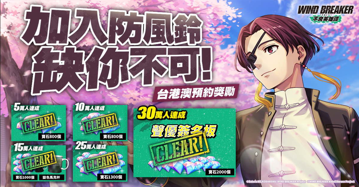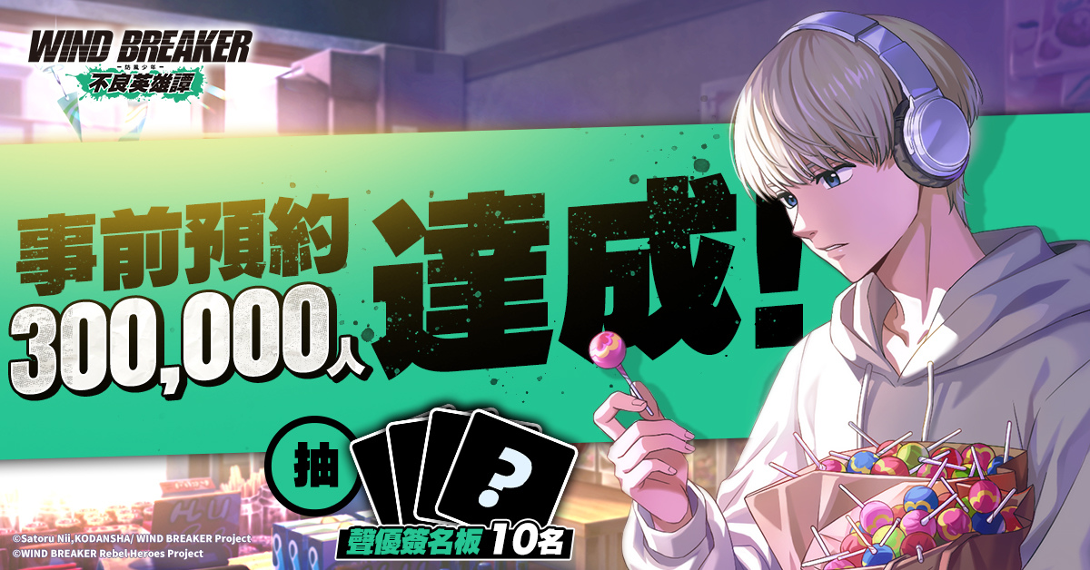 《WIND BREAKER -防風少年- 不良英雄譚》事前預約起跑後,立刻在台港澳掀起熱血旋風!憑藉超人氣原作 IP、劇情高度還原、以及魄力十足的高品質 3D 畫面演出,吸引大量粉絲與玩家熱烈參與!隨著預約目標達成,全服預約獎勵已全數解鎖,「聲優親筆簽名板」抽獎活動也同步展開,快邀請你的好友一起加入吧!