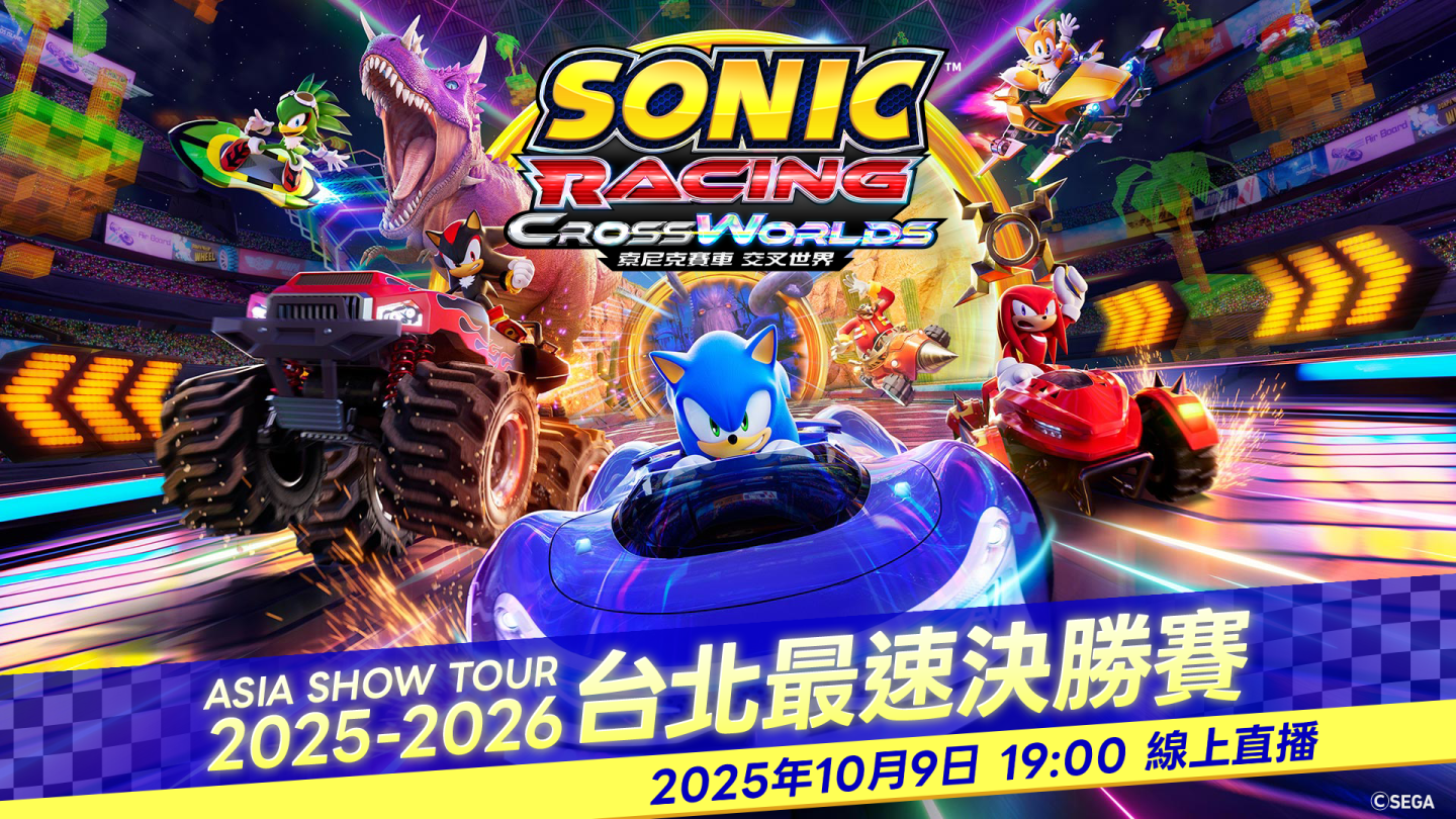 SEGA 世雅預定 2025 年 9 月 25 日(四)發售的 PS5、PS4、Xbox Series X|S、Xbox One、Nintendo Switch、PC(Steam、Epic Games Store)遊戲《索尼克賽車 交叉世界》,即將舉行「ASIA SHOW TOUR 2025-2026 台北最速決勝賽」,本賽事是以網路創作者、實況主為主的邀請賽。
