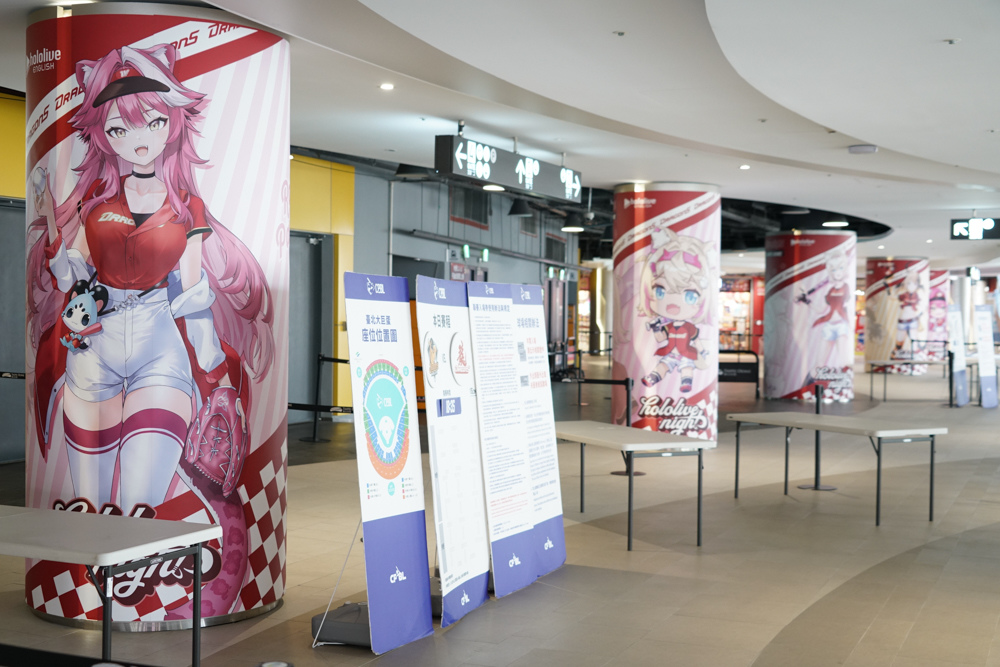 為期三天的跨界主題日,臺北大巨蛋場內外進行了 hololive 聯名佈置。入口處與場館內的樑柱上隨處可見本次合作成員 Gigi Murin、Raora Panthera 與 FUWAMOCO(Fuwawa Abyssgard、Mococo Abyssgard) 的立繪與Q版圖素,營造出濃厚的應援氛圍。