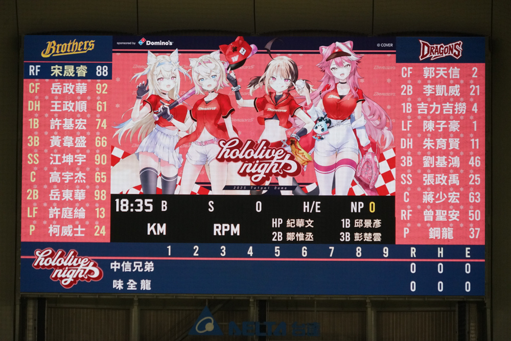 中華職棒味全龍隊與知名虛擬偶像品牌 hololive production 聯手打造的「hololive night」主題日於今(29)日在臺北大巨蛋盛大開幕,吸引粉絲與球迷湧入,活動首日展現聯名佈置與周邊商品販售,更邀請到 hololive 母公司 COVER 執行長谷鄉元昭(Yagoo)擔任開球嘉賓,現場 hololive 粉絲也熱烈迎接 Best Girl 到來。