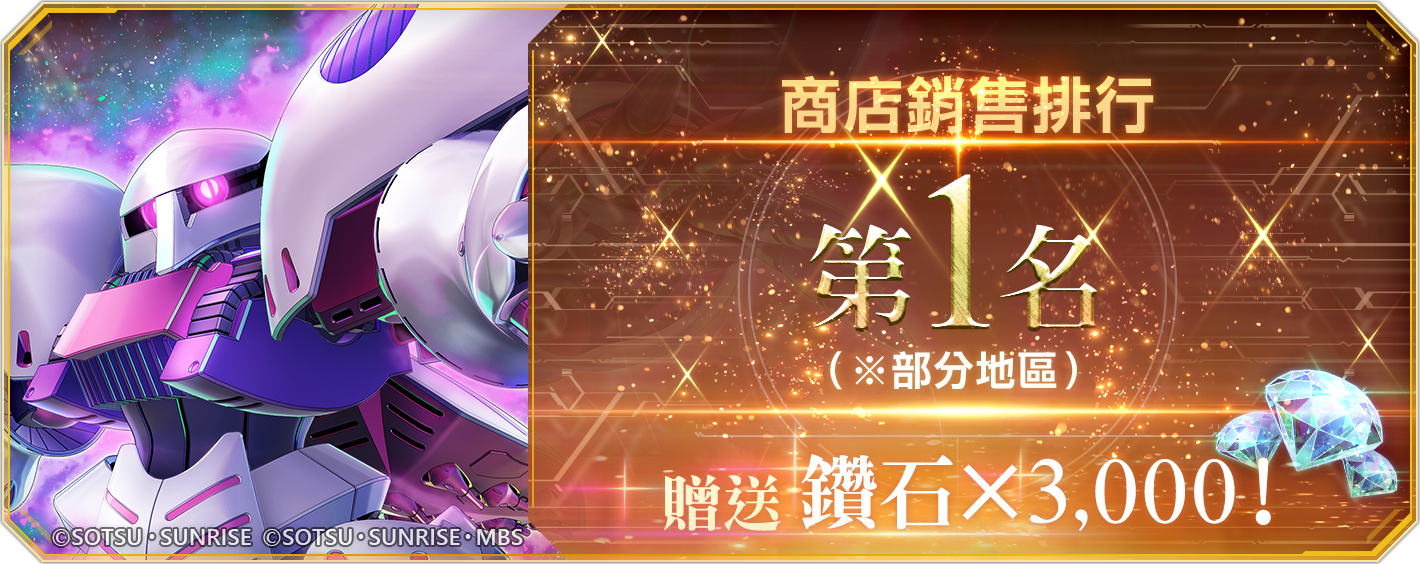 為了慶祝遊戲榮登商店銷售排行第一,Bandai Namco Entertainment Inc. 將贈送全體玩家 3,000 顆鑽石,每個帳號限獲一次,新手教學結束後即可於「禮物」處領取。禮物發送期間至 9 月 30 日 22:59(GMT+8)為止。