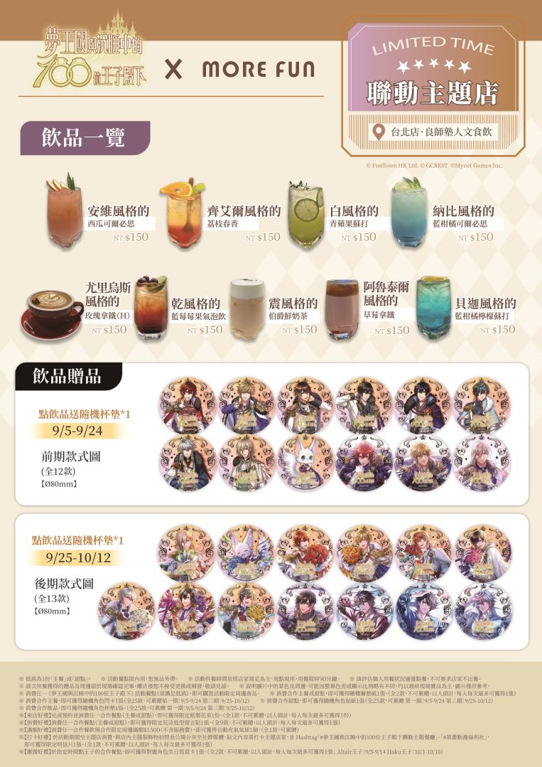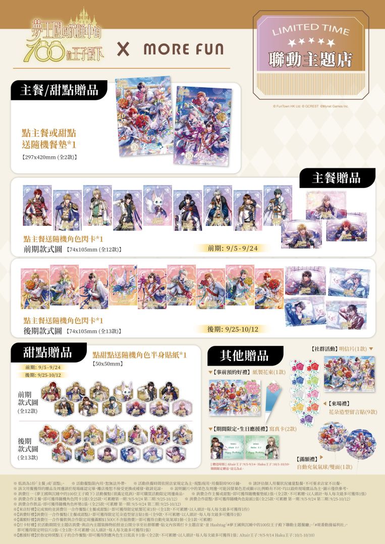 於指定時間點享用王子合作餐點,可獲得對應角色生日寫真卡1張(Altair王子:9/5-9/14;Haku王子:10/1-10/10)。