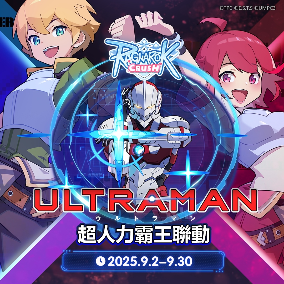《Ragnarok Crush》宣布,自 9 月 2 日起與《超人力霸王 ULTRAMAN》展開聯動合作,全球玩家將可以在遊戲中與超人力霸王一起並肩作戰!