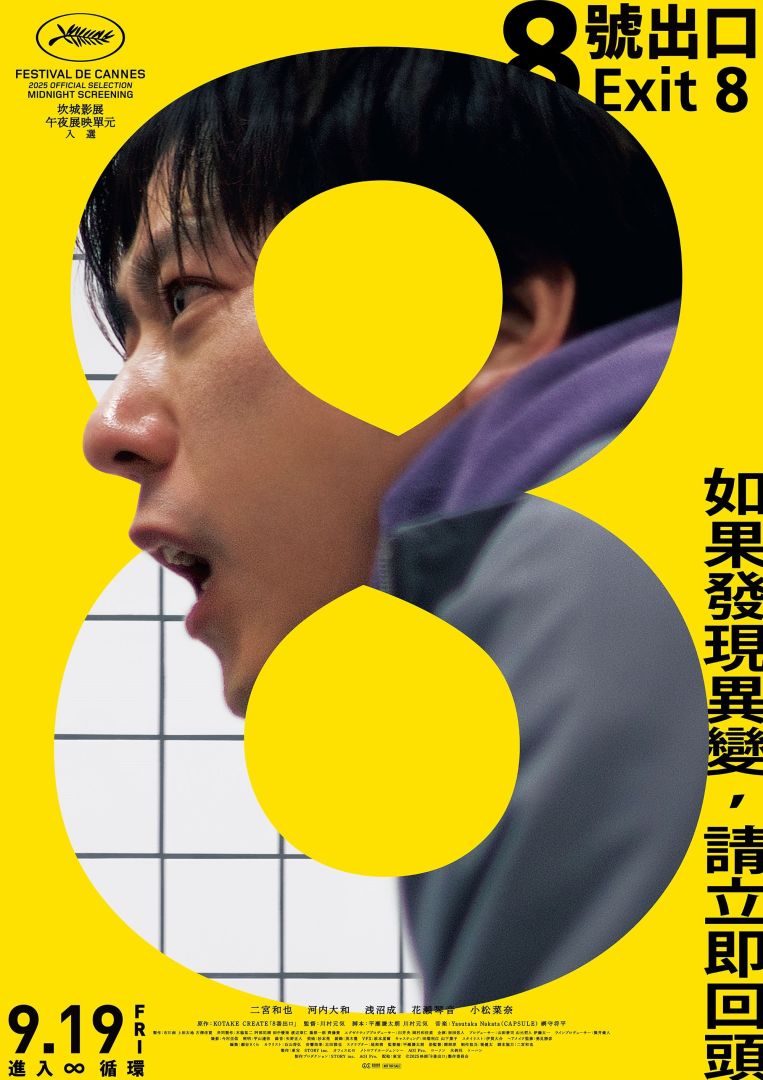 電影《8號出口》改編自日本獨立遊戲開發商 KOTAKE CREATE 所創作、全球熱賣超過 180 萬套的同名恐怖驚悚遊戲,自去年底宣布製作消息以來,便引發高度期待。由偶像天團「嵐」成員二宮和也與「空靈女神」小松菜奈攜手主演,強大卡司讓影迷早已迫不及待。
