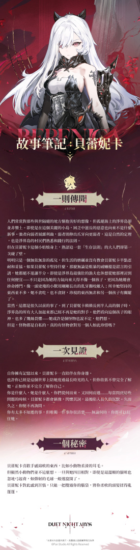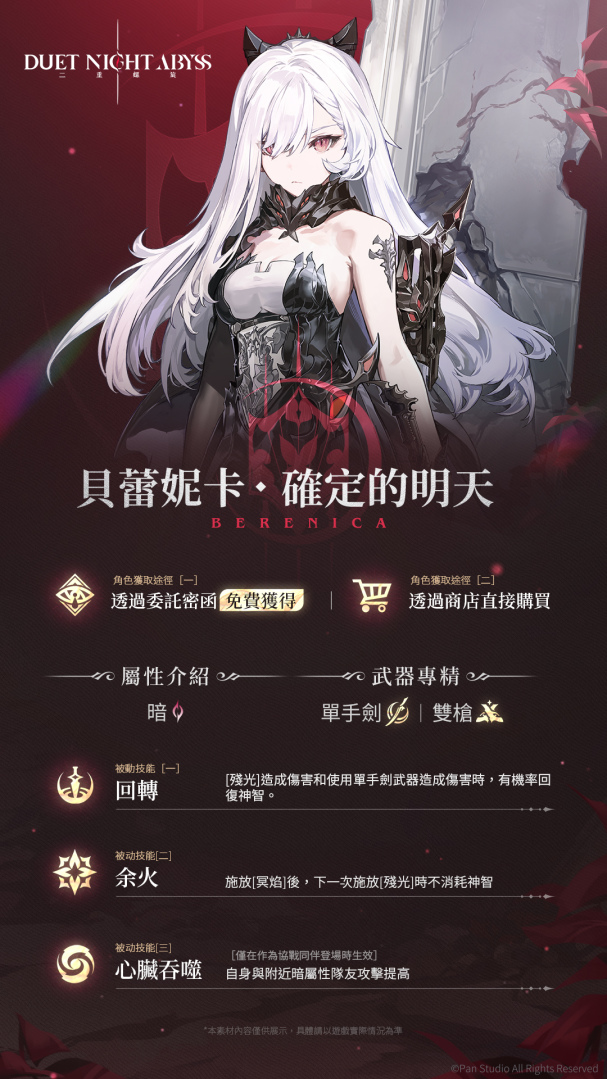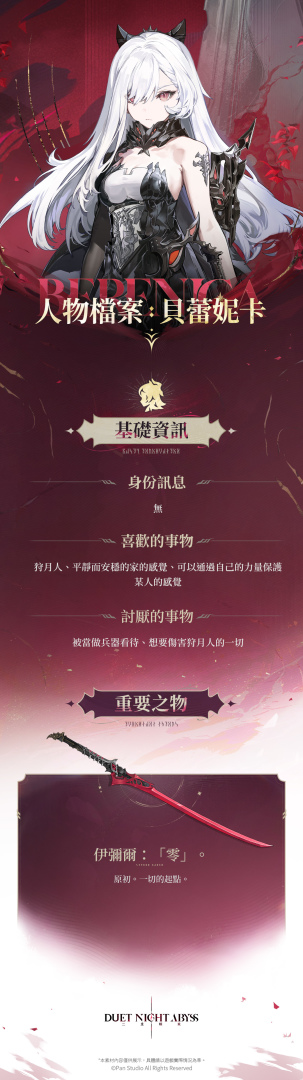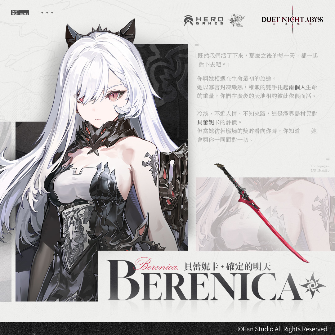 由 HERO GAMES 旗下遊戲工作室 Pan Studio 打造的「雙線幻想×多維戰鬥」二次元新作《二重螺旋 Duet Night Abyss》(PC/iOS/Android),釋出「貝蕾妮卡」角色資訊介紹供玩家參考。