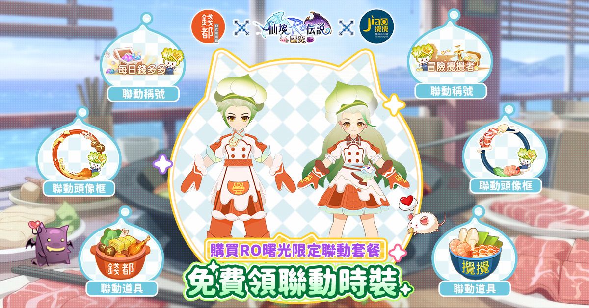Gravity Game Vision 發行的 MMORPG 手遊《RO仙境傳說:曙光》,於今年 9 月正式宣佈與知名火鍋品牌「錢都日式涮涮鍋」及「攪攪風味小火鍋」攜手,展開為期一個月的跨界合作!