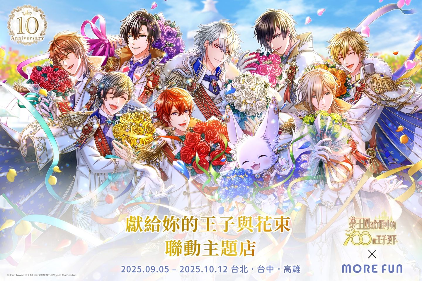 《夢100》×萌番 More Fun 聯動主題店將於 2025 年 9 月 5 日(五)至 10 月 12 日(日)期間正式展開,並將在台北、台中與高雄三地的指定合作餐廳內舉行,敬請各位公主殿下蒞臨與王子們一起度過難忘的時光。