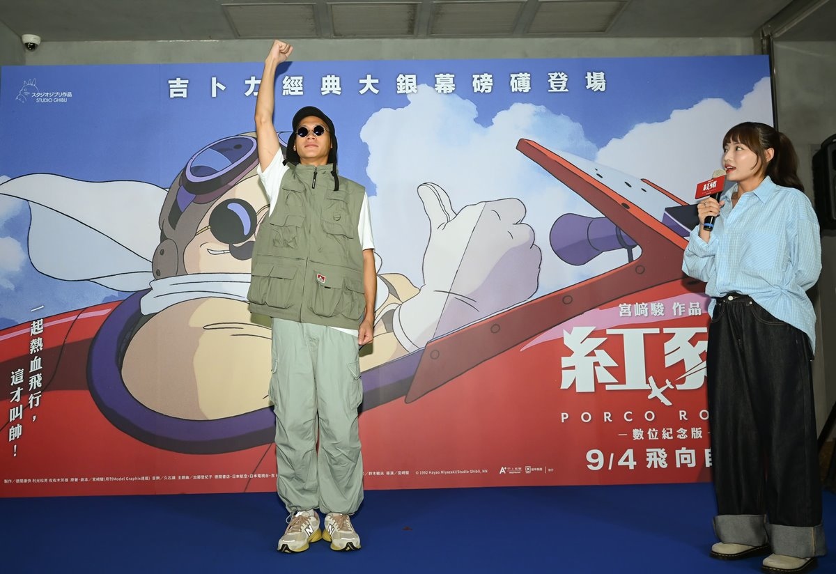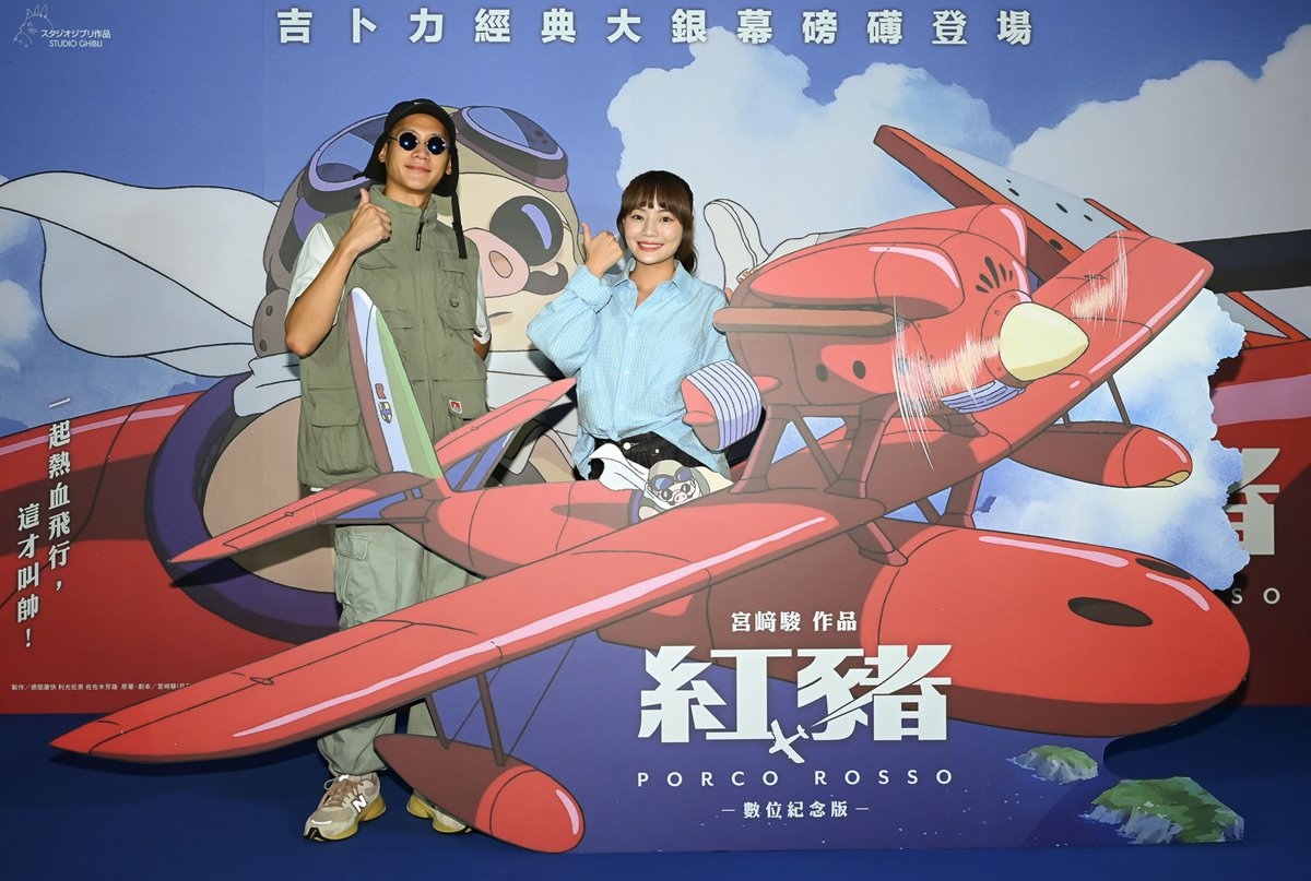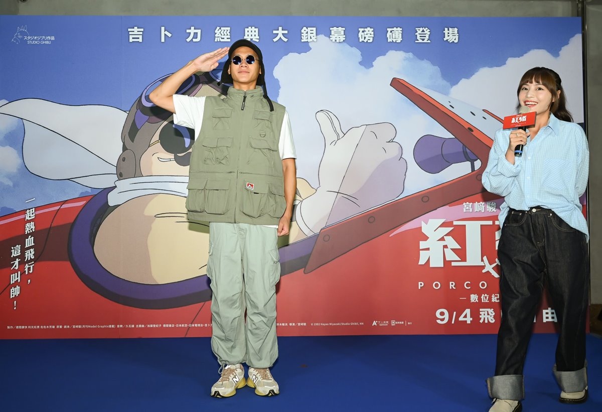 宮﨑駿經典鉅作《紅豬》被譽為吉卜力工作室「最熱血神作」,即將於 9 月 4 日磅礴重返大銀幕。片商甲上娛樂今晚(9/2)特別在台北松仁威秀舉辦首映會,邀請曾服役四年半、因軍旅實境節目走紅的「魔鬼班長」雲朵與搭檔阿夫擔任熱血飛行嘉賓。