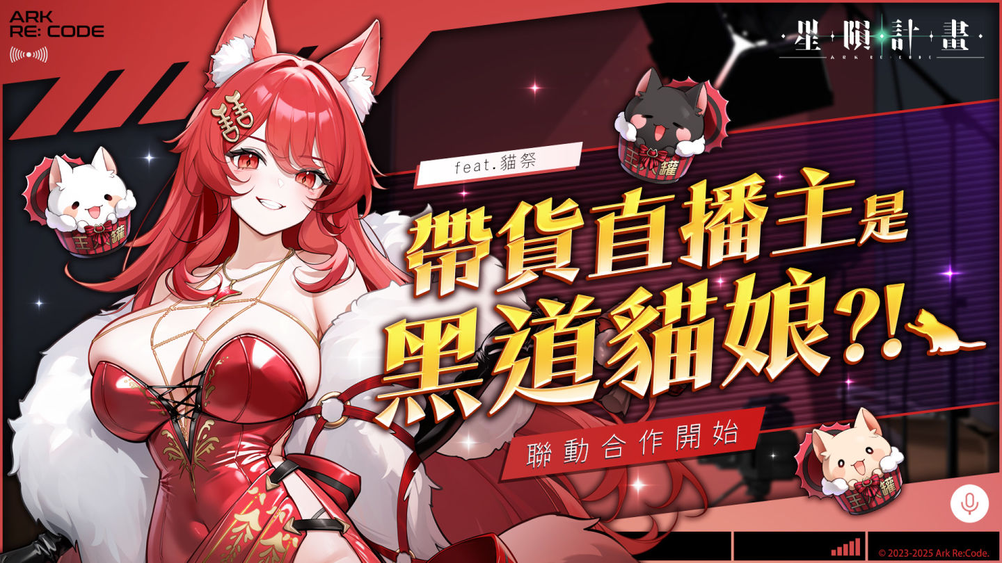 在聯動方面,《星隕計畫》與人氣 Vtuber「貓祭」合作推出限定活動「帶貨直播主是黑道貓娘?!」,活動期間內,限定團員「貓祭」與專屬羈絆「隱藏的熾熱」將開放提升招募機率,讓團長們有機會招募這位風格獨特的黑道貓娘進入隊伍。