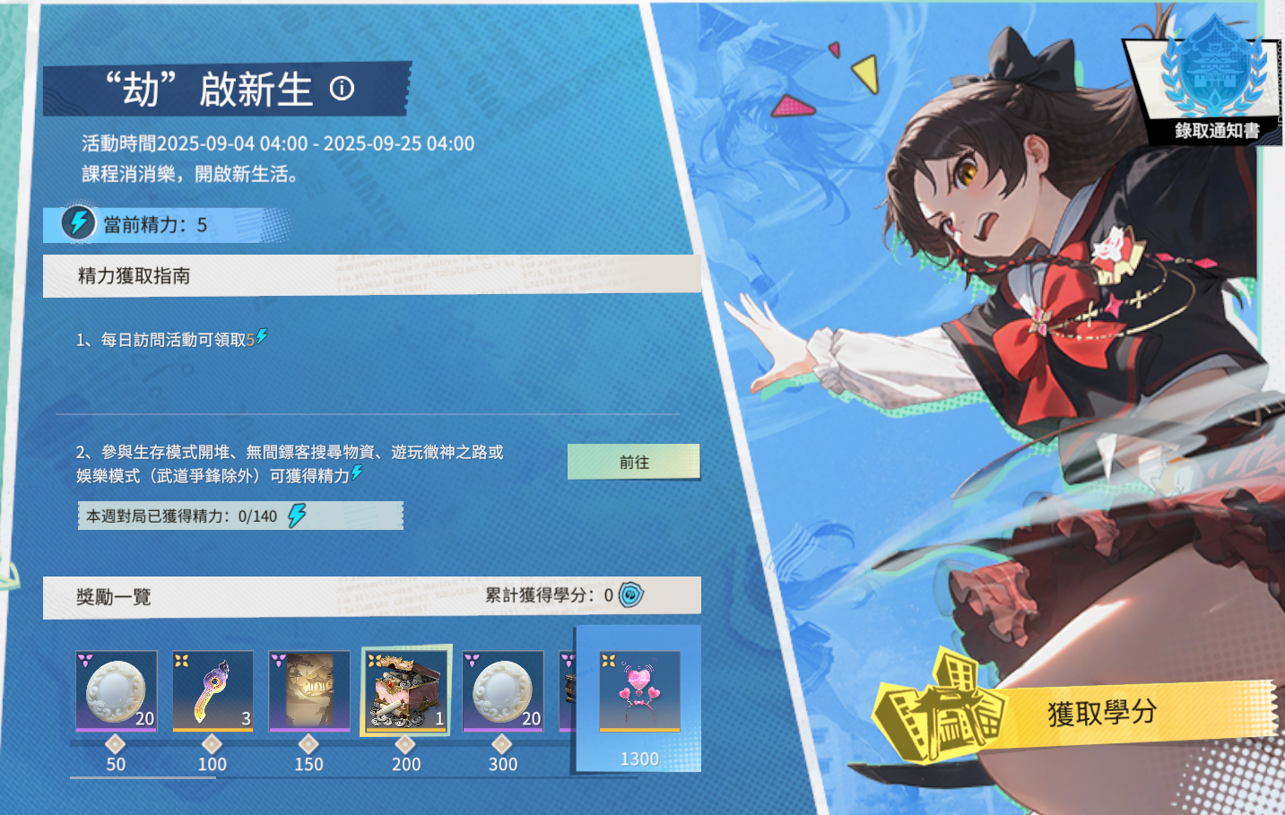 獲得精力將可參與「課程消消樂」進行三消小遊戲,消除課程可獲得相應「學分」,每消除30個同種類的課程,還可觸發 1 次相應的「英雄奧義」,積攢學分達到一定數量,還將可領取相應活動獎勵!