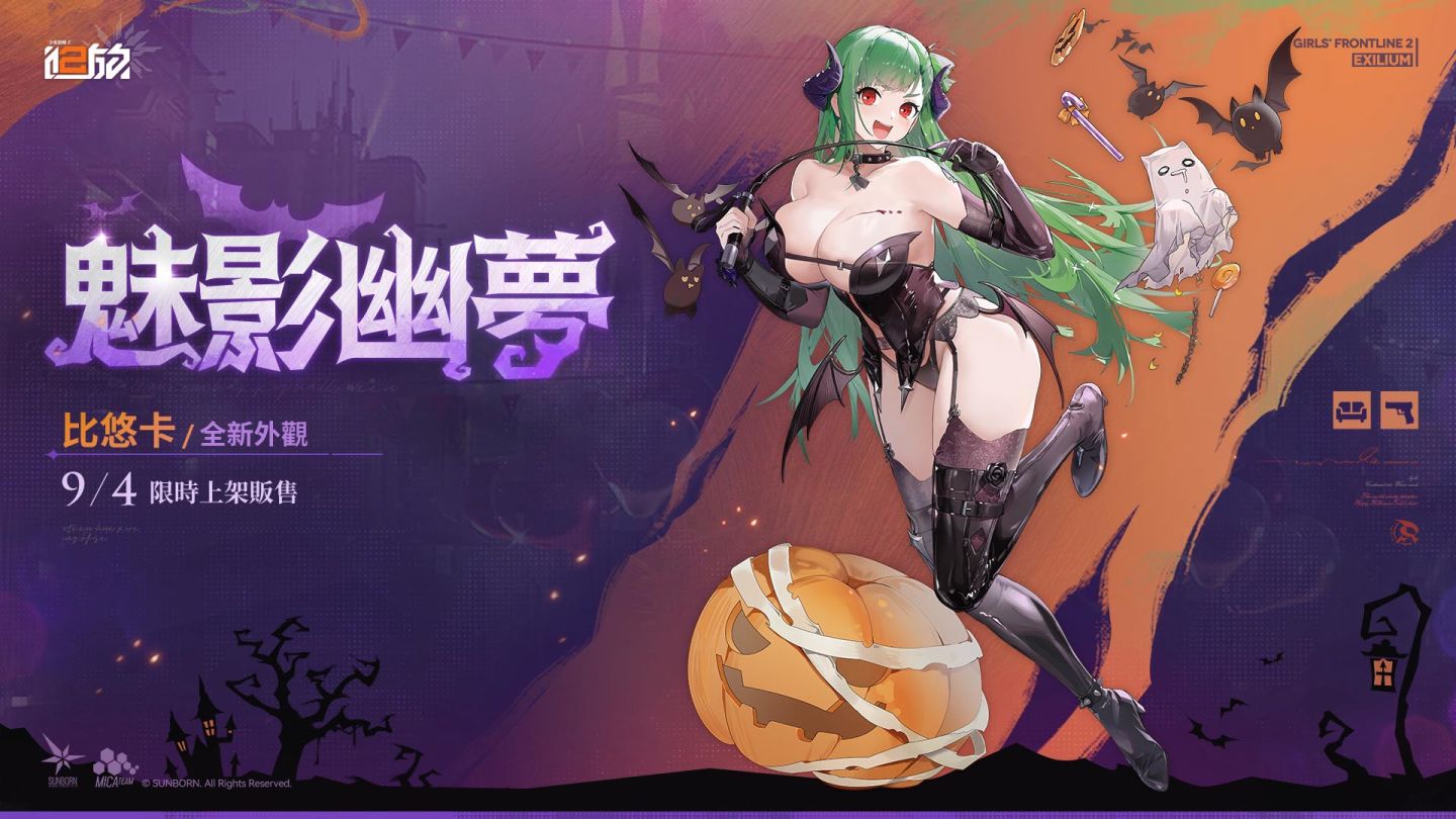 版本更新後上架比悠卡「衣裝.魅影幽夢」,限時於商城「外觀採購」購買獲取並展開限時折扣。