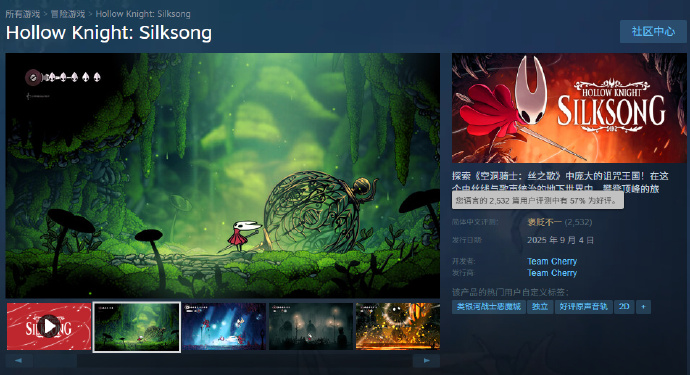 備受期待的獨立遊戲續作《空洞騎士:絲之歌》(Hollow Knight: Silksong)已於9月4日正式發售,然而遊戲推出後不久,其簡體中文翻譯品質在簡中玩家社群中引發討論,出現褒貶不一的評價。