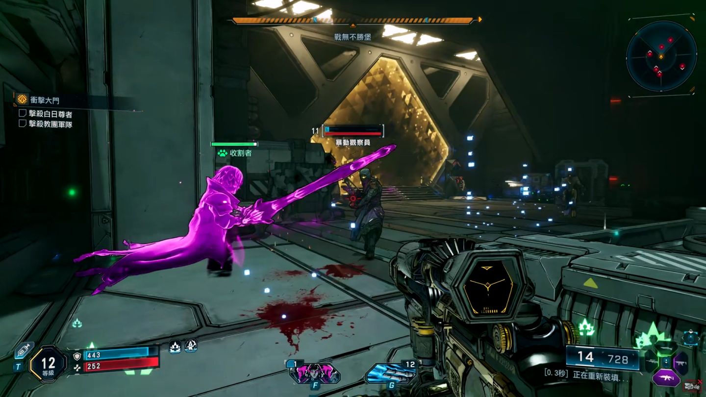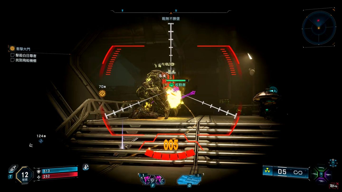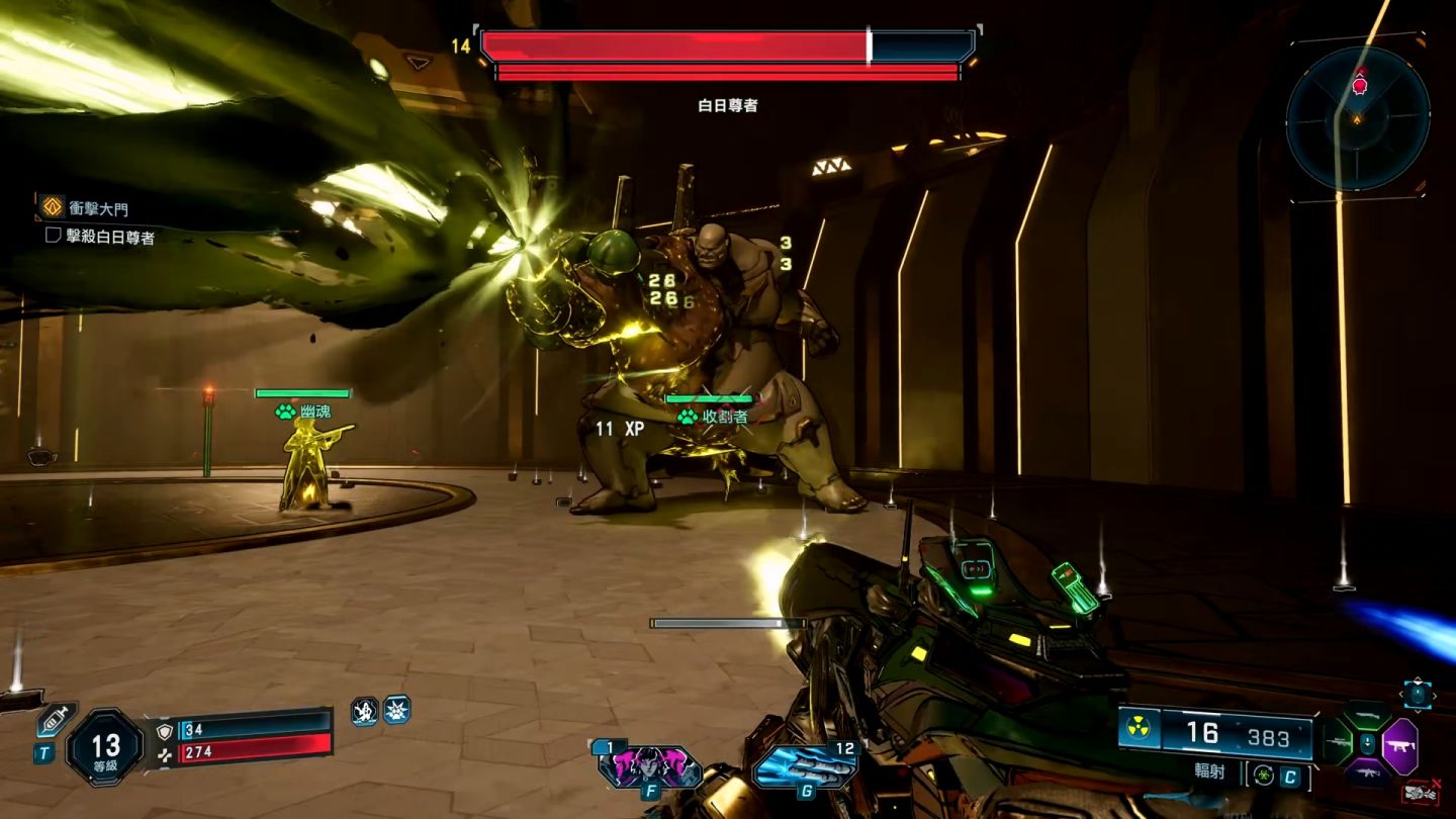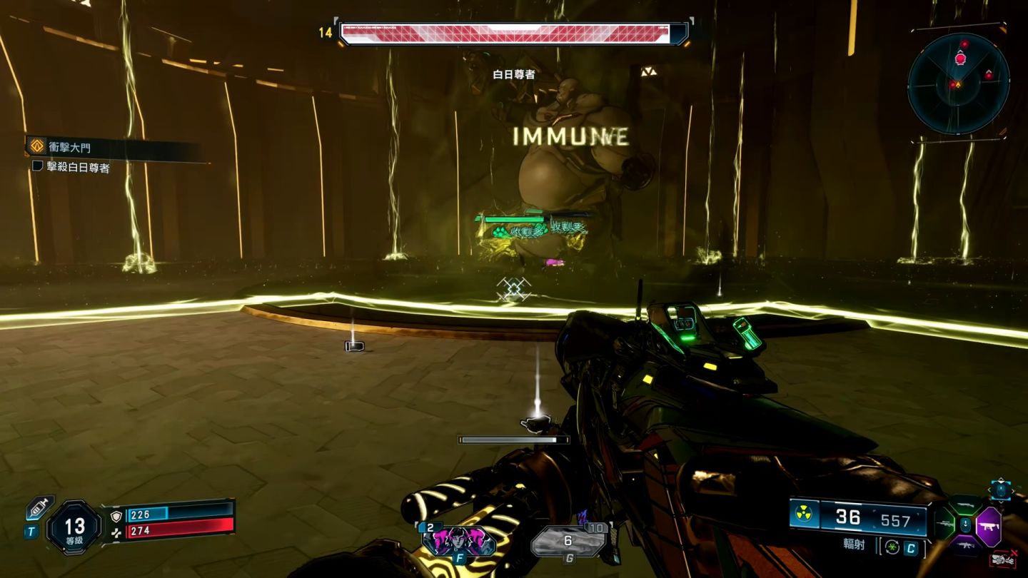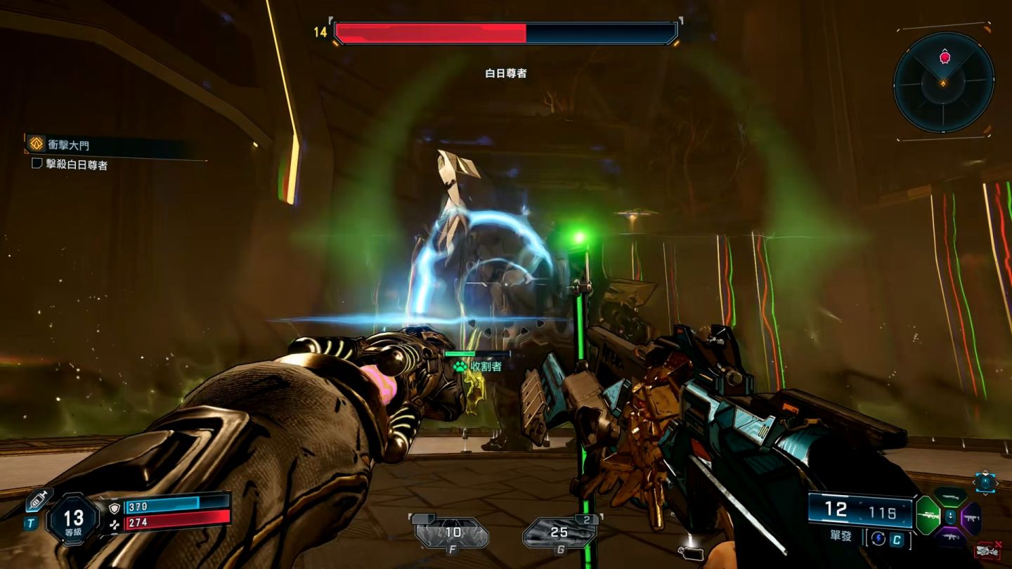 更添挑戰的是,戰鬥中生成的小兵不僅會騷擾你,若被白日尊者吸收,更會使其護甲進入無敵狀態。這意味著玩家需要在輸出首領與清理小兵之間做出迅速抉擇。這場耗時近 10 分鐘的戰鬥,考驗了玩家的移動、槍法與策略應對能力,並且隨著戰鬥階段場面更加混亂與刺激,甚至將鬥技場化為毒氣室,考驗著玩家的戰鬥應變能力。