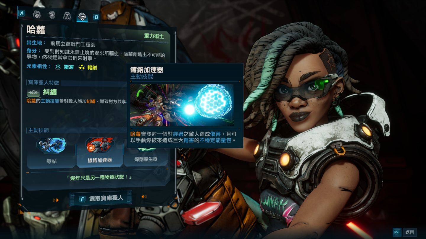 重力術士哈蘿,,技能特徵是控場傷害型,能操控重力影響敵人移動,技能樹強化控制或範圍傷害,適合策略型玩家。