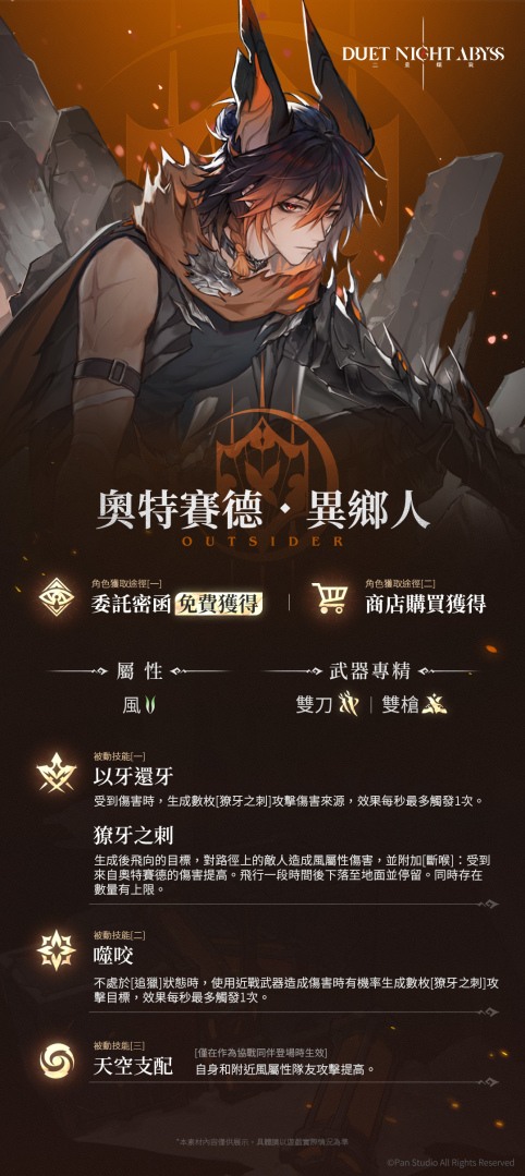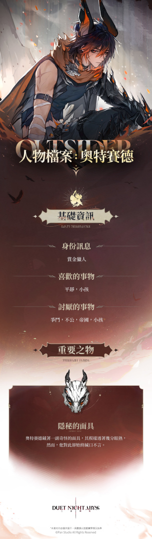 HERO GAMES 旗下遊戲工作室 Pan Studio 打造的「雙線幻想×多維戰鬥」二次元新作《二重螺旋 Duet Night Abyss》(PC/iOS/Android),近日釋出「奧特賽德」角色資訊介绍供玩家參考。
