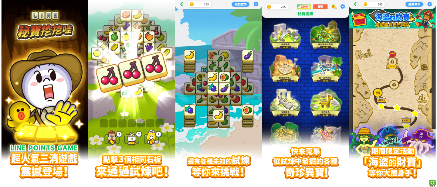 LINE GAME 今(8)日宣布,旗下「LINE POINTS GAME」系列推出第三款作品,全新遊戲《LINE 秘寶挖挖哇》即日起正式上線!