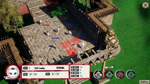 至於在本作玩法方面,大致分成「道場/戰鬥(バトル)/故事(ストーリー)」三個部分進行。在道館中,玩家可以自由與加入軍團的貓咪忍者們對話,藉此來引導他們成長。至於對戰,本作將會採用回合制戰棋式戰略玩法,玩家需要活用貓咪們的技能特性與地形來引導他們獲得勝利。另外對戰還會分成單人模式與線上對戰等兩種不同玩法。至於在故事模式中,玩家可以與宿敵們戰鬥獲得勝利,或是讓貓咪忍者們在對戰錦標賽不斷獲勝,或是解鎖新的貓咪忍者加入夥伴陣容。