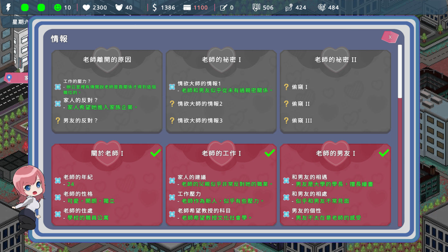 .多樣的遊戲系統:內含多款迷你遊戲,並擁有豐富的互動機制,包括約會、偷窺、情報蒐集和偷情。
