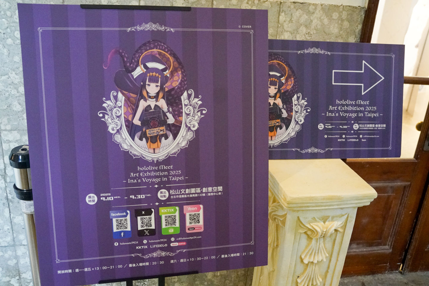 hololive 在台首場藝術特展「hololive Meet Art Exhibition 2025 ~ Ina's Voyage in Taipei ~」 今日於台北松山文創園區創意空間正式開展到 9 月 30 日為止,開展首日雖然是平日,但依然吸引了粉絲提前排隊入場想要一睹小畫家 Ina 的的創作。
