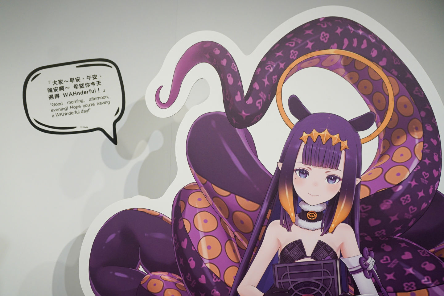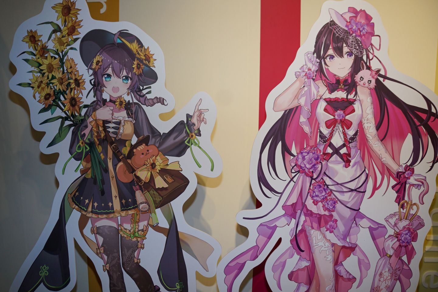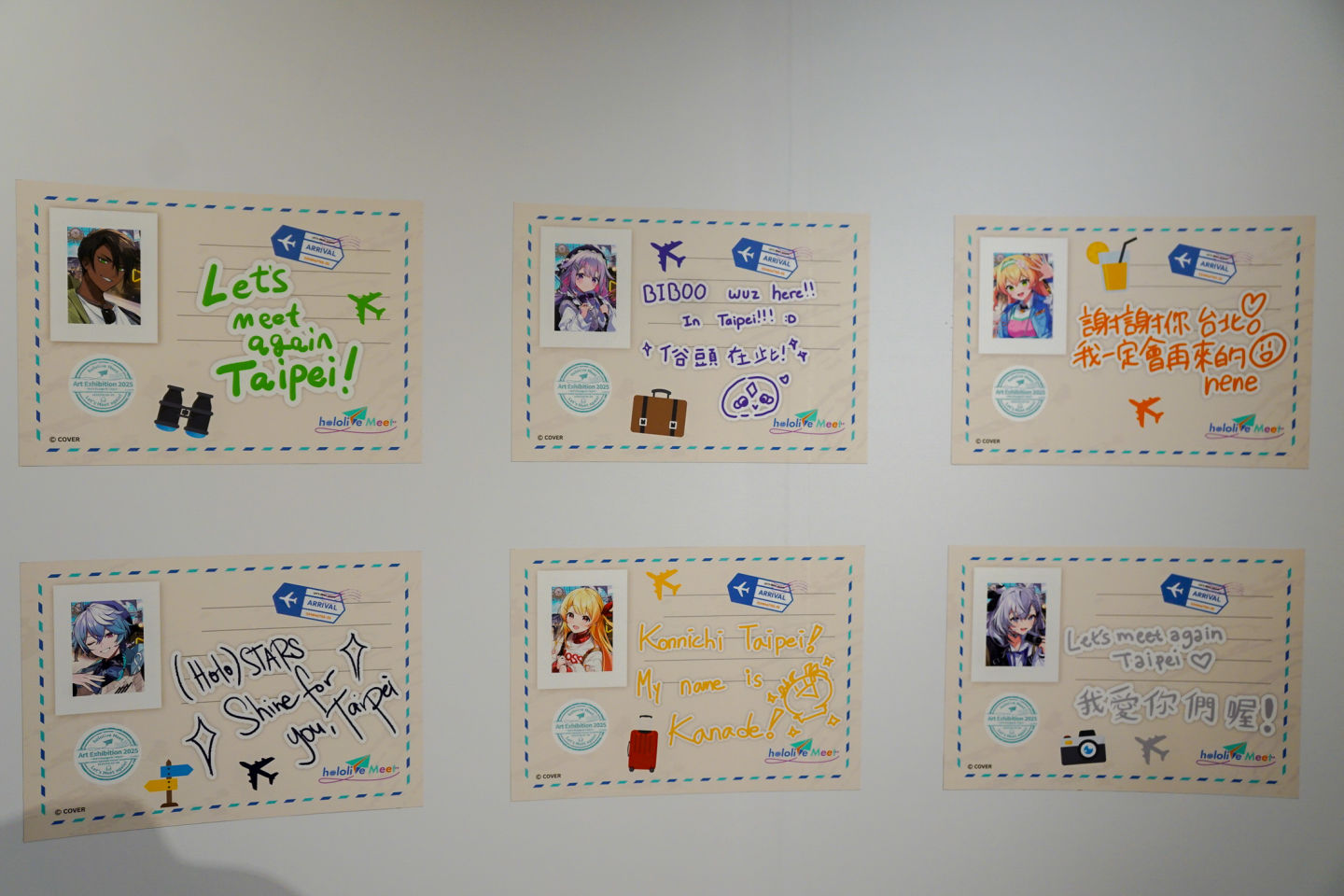 展覽現場入口有小畫家 Ina 的身影以及 hololive Meet 2025 六位大使的人形立牌,附有他們為台北場特別留下的訊息。
