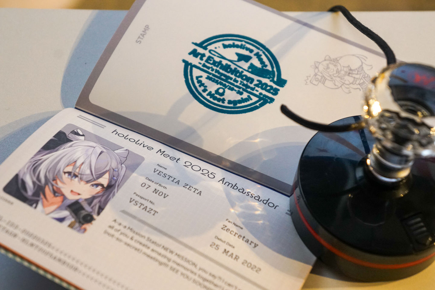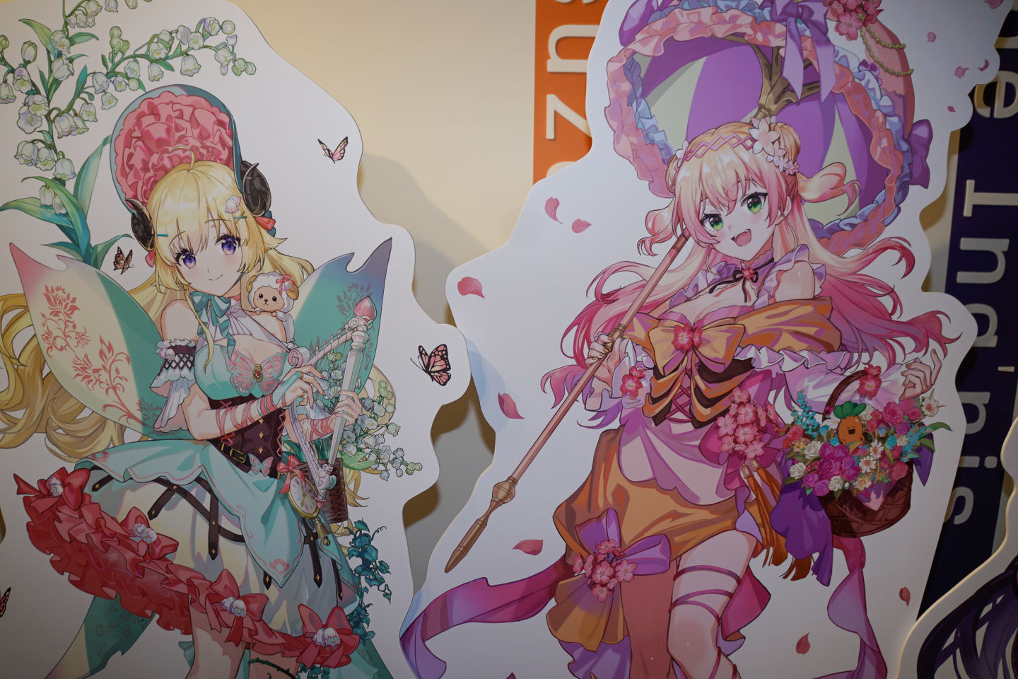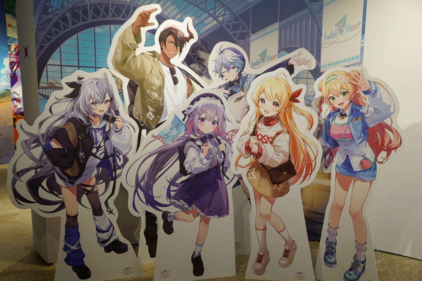 展覽現場入口有小畫家 Ina 的身影以及 hololive Meet 2025 六位大使的人形立牌,附有他們為台北場特別留下的訊息。
