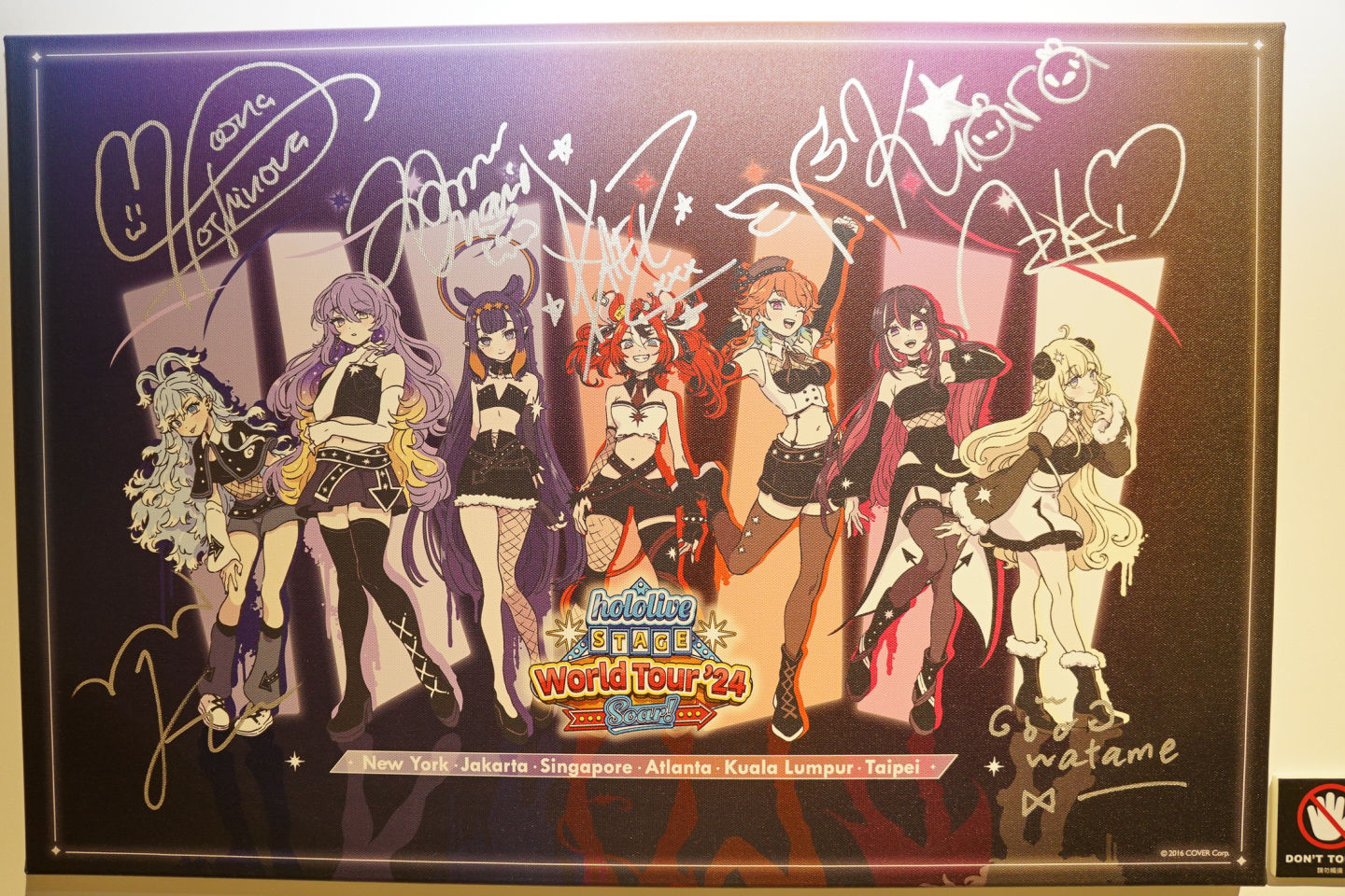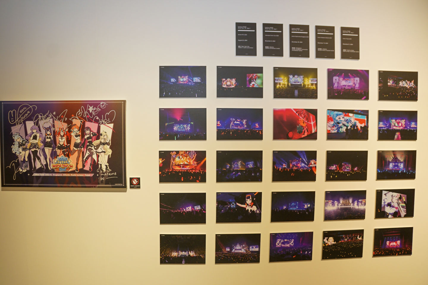 在展區前段,可以看到 hololive 自 2023 年至今的演唱會活動照片精選,以及 hololive Stage 世界巡迴的精彩回顧,甚至還有舞台服裝的設定手稿,而主辦方 LifeDeCo 更特地蒐集了台北場 3D Live 全部成員的親筆簽名,為粉絲帶來驚喜。
