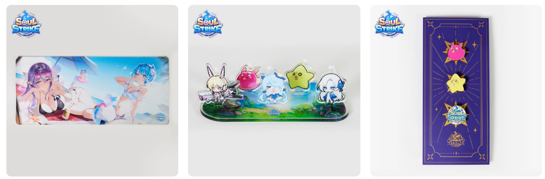 此外,官方品牌商店 Com2uS Store 也同步推出《靈魂衝擊:無限放置》限定周邊,包括以神話同伴奈麗莎與格蘭蒂斯為主題的滑鼠大桌墊、壓克力立牌 5 件組、金屬徽章 3 件組,皆為粉絲們值得收藏的精美商品。