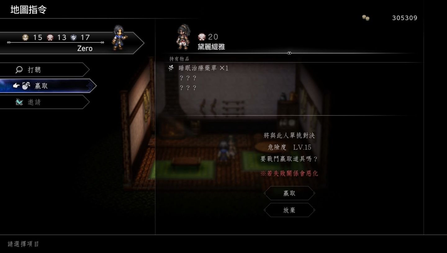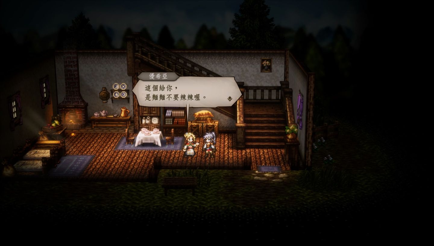 建造城鎮的經營要素以外,玩家的主角可以實際進入這些居民的「住家」當中與之互動,這時就能其使用地圖技能「打聽」「贏取」「邀請」的選項依然建在,不知道是否有沒有可能用住家的方式,收集到曾經出現過的著名旅人入隊伍,屆時就是玩家可以體會的地方了。