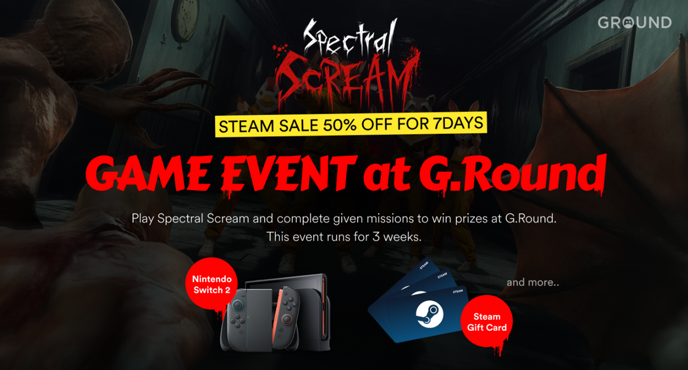為紀念《Spectral Scream 幽靈尖叫》「幽靈站」更新,將於 Steam 舉辦為期七日的限時五折優惠活動,並在全球遊戲測試與行銷平台 G.Round 推出為期兩週的遊戲挑戰。