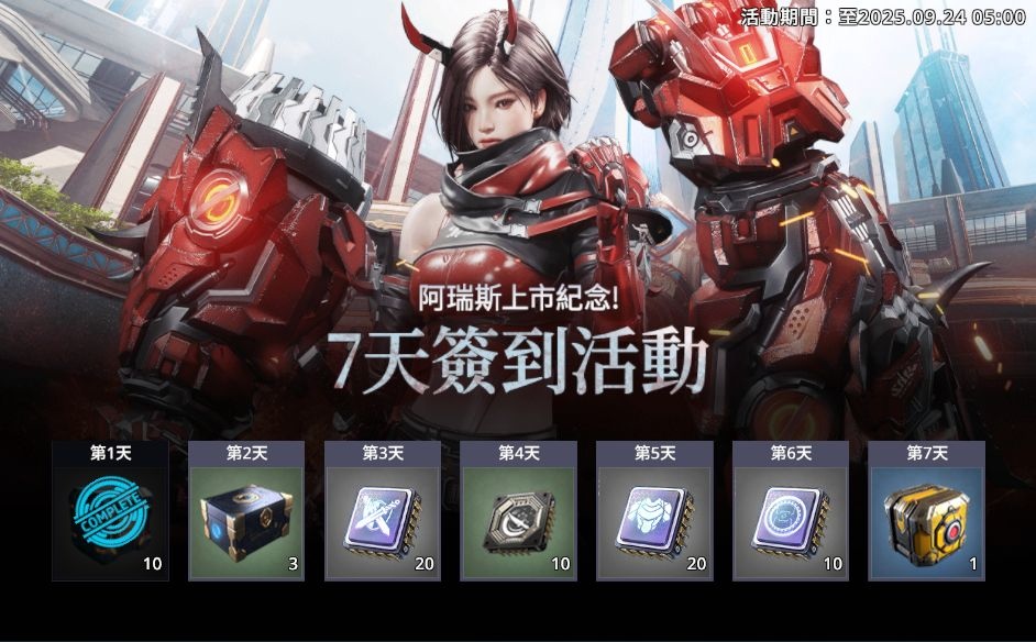 官方於上市期間推出全新守護者每日任務,只要玩家達成 7 日任務就可以獲得「杜克的S級機甲召喚券」!完成上市簽到即可獲得「A級聖物選擇箱」、「武器及防具強化晶片」、「戰鬥支援箱」等豐富的獎勵。
