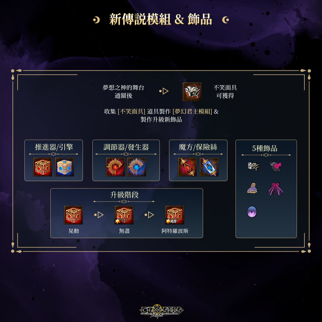 本次改版新增「D的夢幻劇」副本,提供四種不同模式的觀賞團副本,內容多元且具挑戰性。副本通關後,特工們將有機會獲得傳說級模組材料與飾品,並以一定機率掉落全新史詩模組「D伯爵喝采模組」。值得注意的是,首次獲得「D伯爵喝采模組」的特工,將觸發全伺服器共享獎勵機制,讓所有特工一同獲益。此外,官方亦同步舉辦副本通關活動,完成挑戰即可獲取多項實用獎勵。