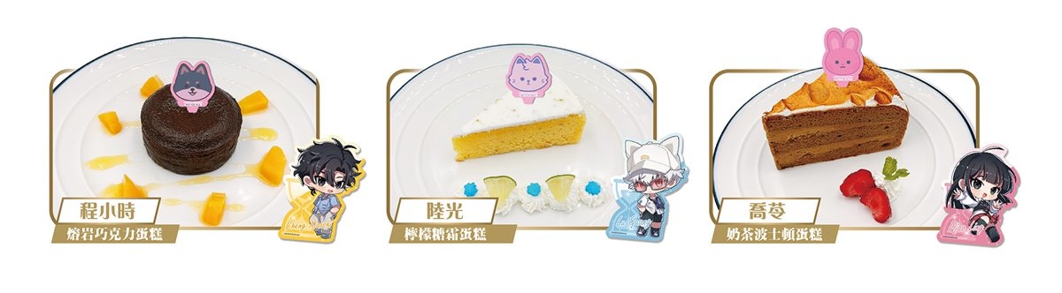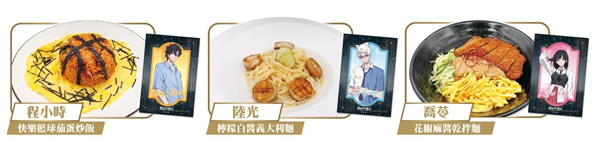 特別推出以「時光照相館」三名主角:程小時、陸光、喬苓,以及主線劇情中重要角色:劉梟、Vein、夏斐、王青等人的主題餐點,融合作品及角色要素,打造兼具視覺與味覺享受的創意蔬食料理,每位用餐來賓都可獲得主題特典。