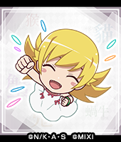 在本合作活動中,「戰場原黑儀」、「八九寺真宵」、「神原駿河」、「羽川翼」、「忍野忍」將在期間限定轉蛋中登場,不管是角色圖還是遊戲中的「STRIKE SHOT」都原汁原味呈現角色魅力,千萬別錯過!