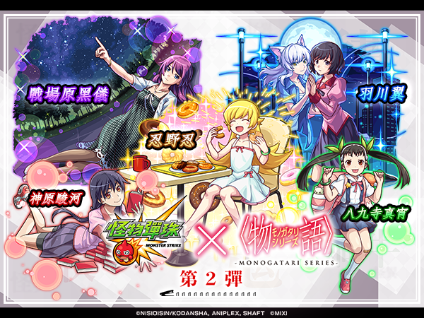 株式會社 MIXI 所推出的一拉一放戰鬥RPG手機遊戲《怪物彈珠》,與動畫《物語》系列的第 2 彈合作活動將於 9 月 13 日(六)12:00 起開跑。睽違 7 年,不僅全新角色將在轉蛋中登場,第 1 彈合作角色也將驚喜現身!