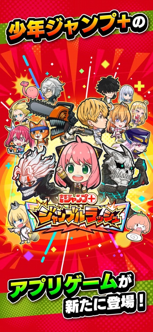 《Jump+ Jumble Rush》為一款以日本漫畫雜誌 App《少年 Jump+》為題材的塔防策略遊戲。在遊戲中,將會收錄包括《Spy×Family 間諜家家酒》、《怪獸8號》、《膽大黨》等眾多人氣作品角色齊聚一堂,玩家可以收錄自己喜歡的作品角色,使用他們在原作中各式各樣的固有必殺技來攻略關卡獲得勝利。