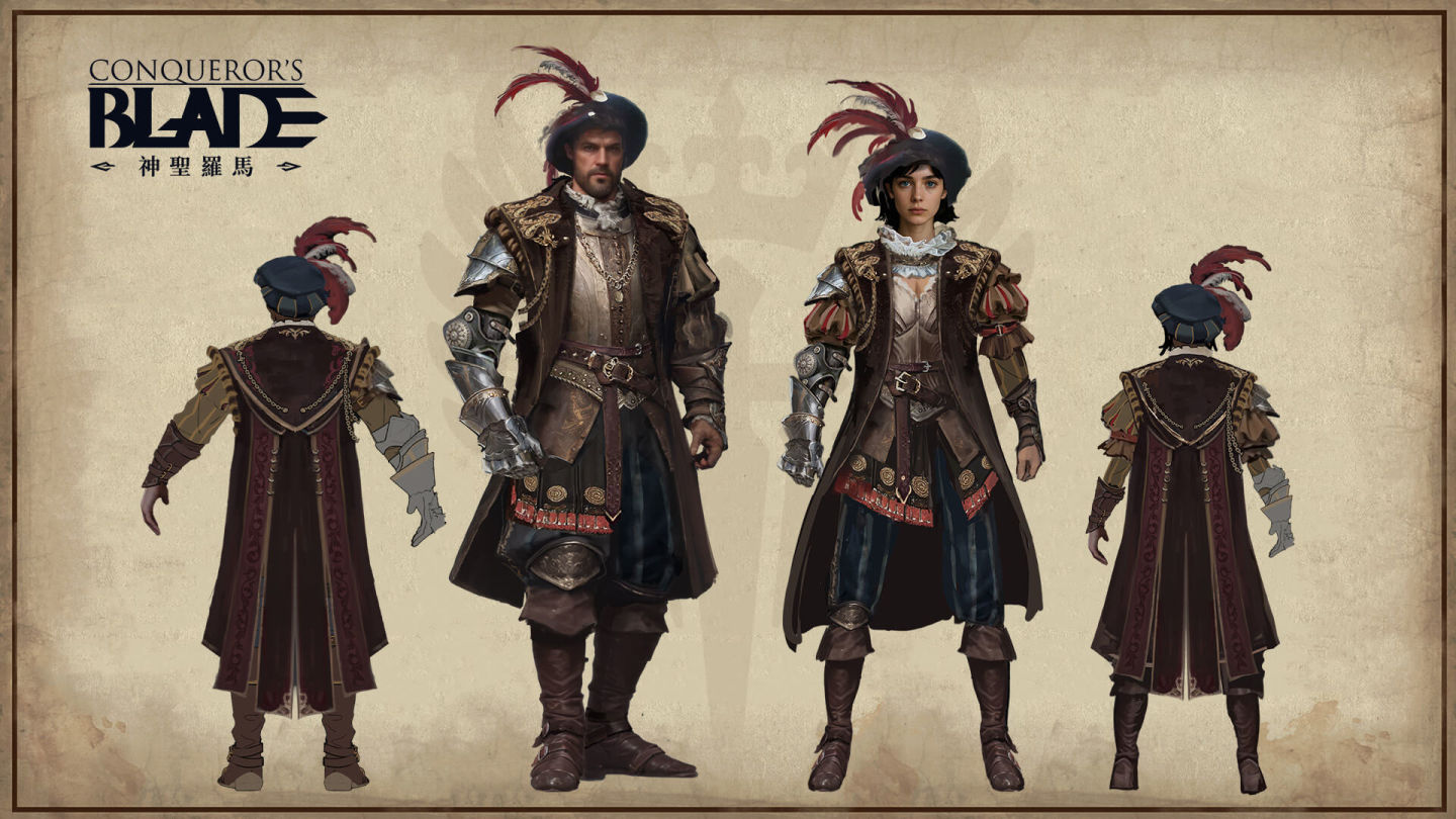 賽季限定武將時裝「險地藩侯」。人們傳說,他是被皇帝流放到此的失意者,注定在無盡的匪患與叛亂中消亡。但現在,他早已習慣在泥濘和血污中擦亮自己的鎧甲,將每一次險境都視為磨礪刀鋒的礪石。其鎧甲源自 16 世紀日耳曼經典制式,黑白半甲與精工鉚結紋飾相映,象徵秩序與堅韌。寬簷羽帽、紅色權帶與長戟,是神聖羅馬中層指揮官的榮耀標識。