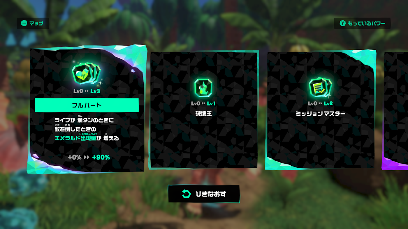 「綠寶石淘金」的關鍵在於破壞化石等情況下獲得的「綠寶石力量」,玩家可從隨機出現的三種力量中選擇,這些力量包含打倒敵人獲得更多綠寶石、增加寶箱內綠寶石數量等各種效果。透過努力獲得不同力量,玩家可以賺取大量綠寶石。