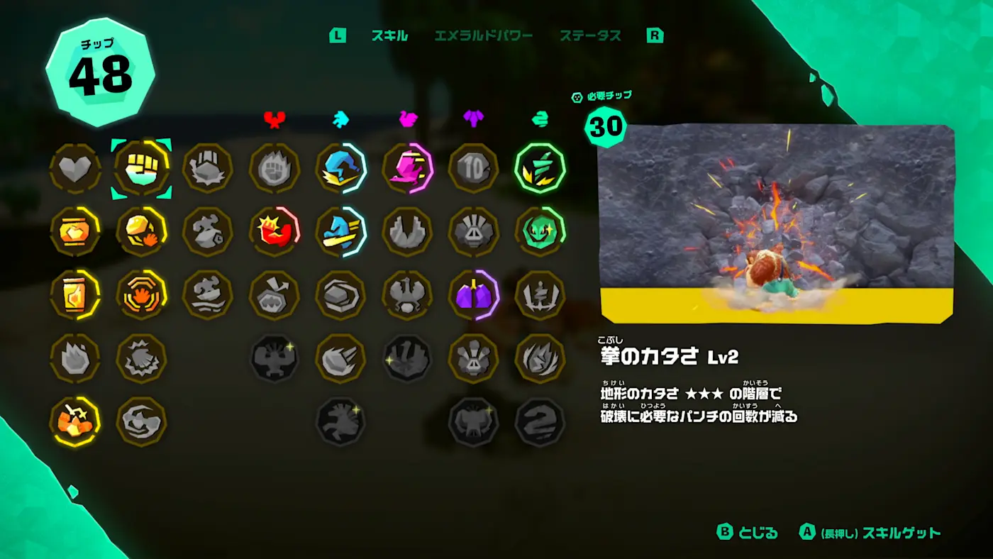 此外,遊戲也強調透過香蕉中隨機出現的技能來逐步強化咚奇剛。雖然每次遊玩獲得的力量和技能會重置,但化石及香蕉的出現位置是固定的,鼓勵玩家透過重複遊玩找出最適合自己的攻略方法。挑戰結束後,玩家將根據結果獲得相應報酬,包括新服裝以及可擺設在 DK 島的角色模型。