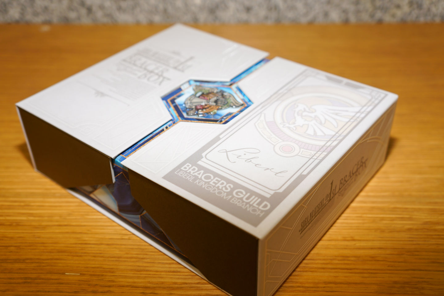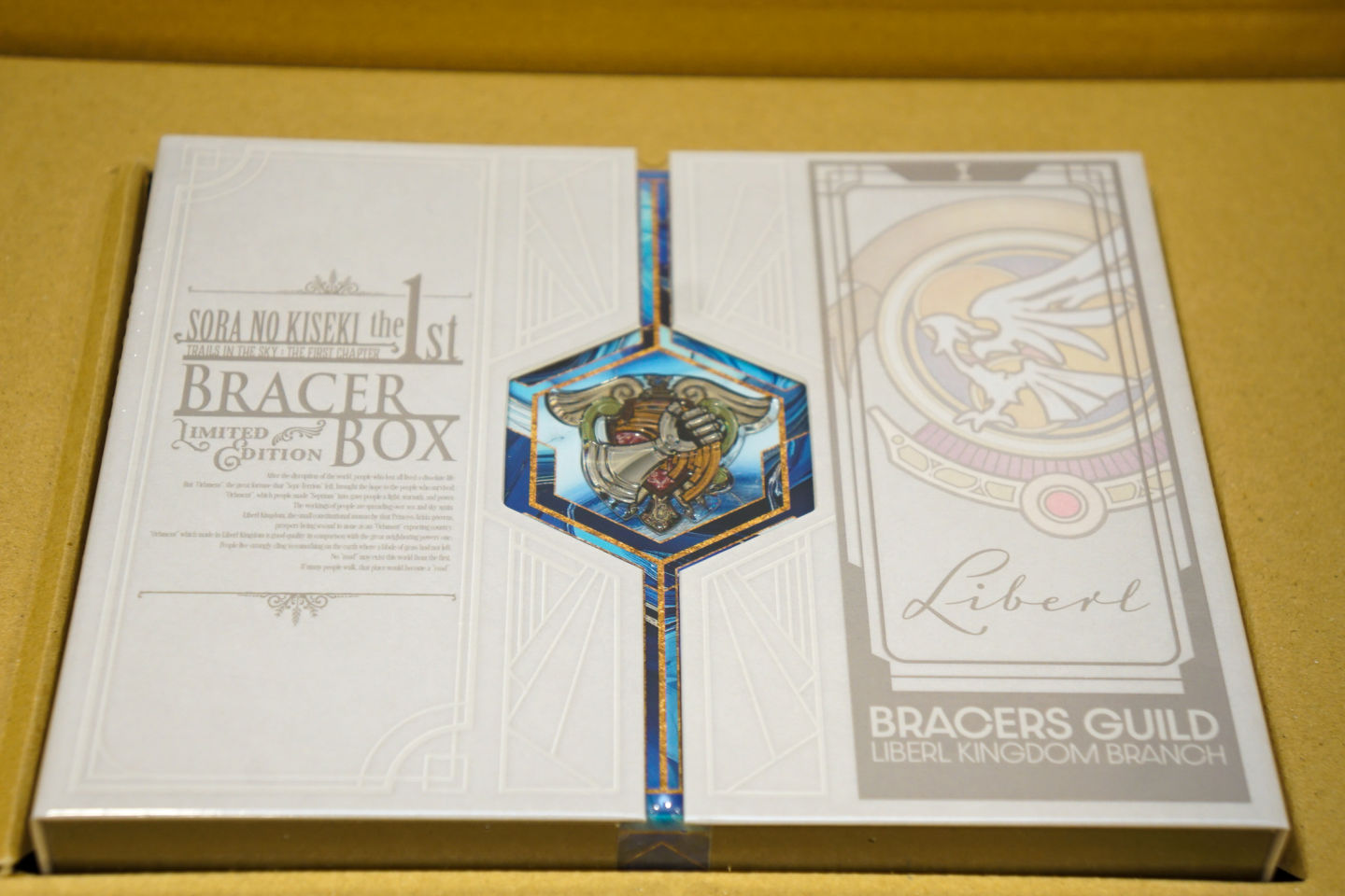 打開外盒後,最先映入眼簾的是以利貝爾王國內民防組織「遊擊士公會」標誌華麗裝飾的盒子