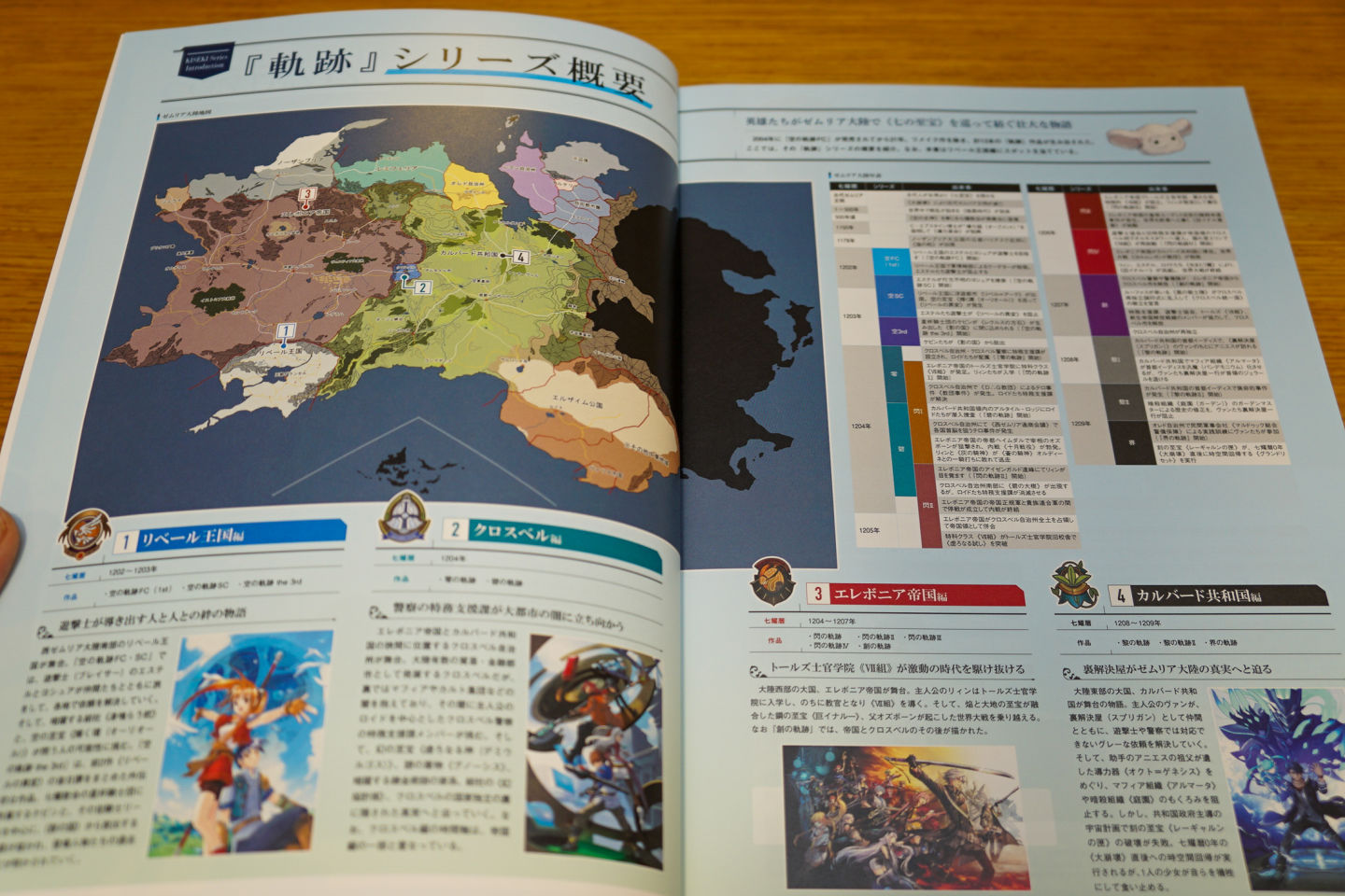 以《空之軌跡 th 1st》發售契機,Falcom 將《空之軌跡》三部曲以及《空之軌跡 the 1st》的設定集。這本長達 450 頁的書中,全彩收錄了從遊戲主要舞台「利貝爾王國」的地圖,到所有登場人物的插畫,以及遊戲的美術設定圖,集結了開發資料與設定,以及 20 年來《空軌》在不同版本、週年紀念時於日本發售的插畫明信片全數收錄的精彩內容,橫跨三部曲必然有爆雷情況,為初次遊玩的玩家加了防雷警語